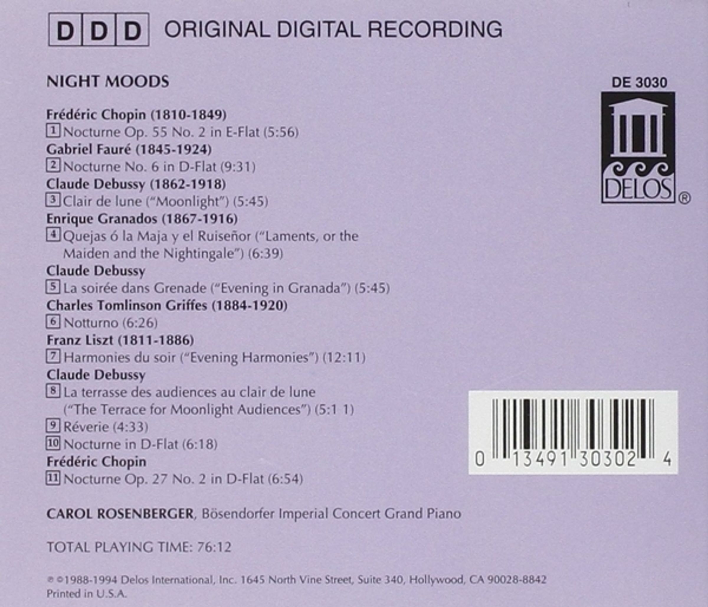+Claude Debussy: Clair de lune; La soiree dans Grenade; La terrase des audiences au clair de lune; Reverie; Nocturne Des-Dur