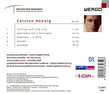 Der 1967 in Dresden geborene Carsten Hennig studierte Komposition bei Adrian Hölszky an der Musikhochschule Rostock (1997-2000) und am Mozarteum in Salzburg (2000-2002). Hennig sucht in seinen Kompositionen meist eine erzählende Perspektive. Die den Werken zugrunde liegende Idee darf dabei jedoch nie als bloßes Programm missverstanden werden. Hennigs Ideen sind vielmehr Konzepte, die sich bis in die Parameter der musikalischen Gestaltung hinein auswirken. Dabei gilt sein Interesse insbesondere den grundlegenden Erfahrungen der menschlichen Existenz verschiedener Gestalt. Fast möchte man ihn einen Phänomenologen nennen, der Konstanten unserer Wahrnehmung und unseres Verhaltens musikalisch ausleuchtet. Hennigs Werke teilen sich dem aufmerksamen Hörer direkt mit: Was den Tönen in den Kompositionen widerfährt, lässt sich auf einer ganz unmittelbaren Ebene nachvollziehen. In der Reihe „Edition zeitgenössische Musik“ belegen Aufnahmen aus den Jahren 2000 bis 2007 mit Interpreten wie dem Thürmchen Ensemble und dem Symphonieorchester des Bayerischen Rundfunks die Bedeutung des 40-jährigen Komponisten.