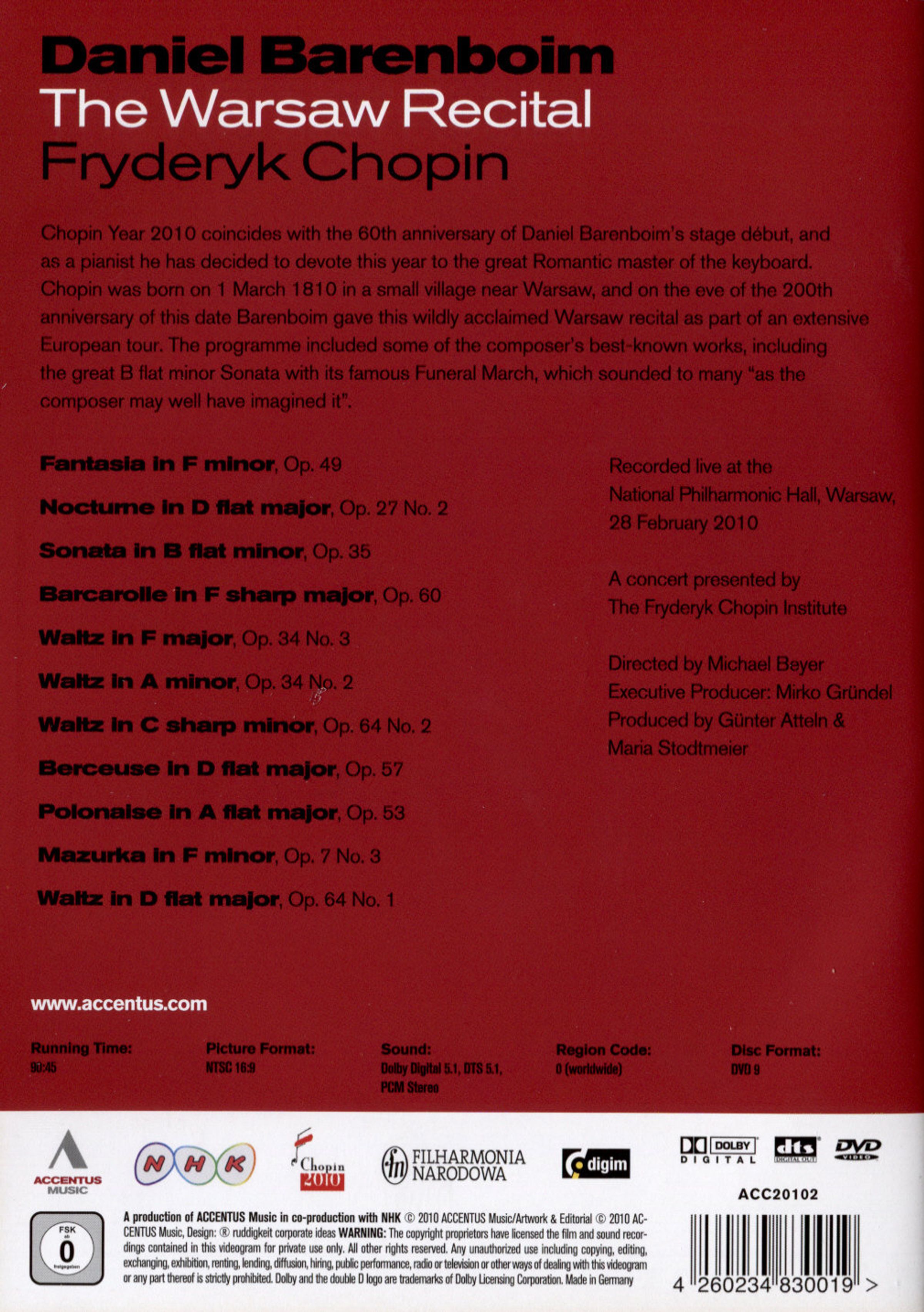 Daniel Barenboim - The Warsaw Recital 2010 auf DVD