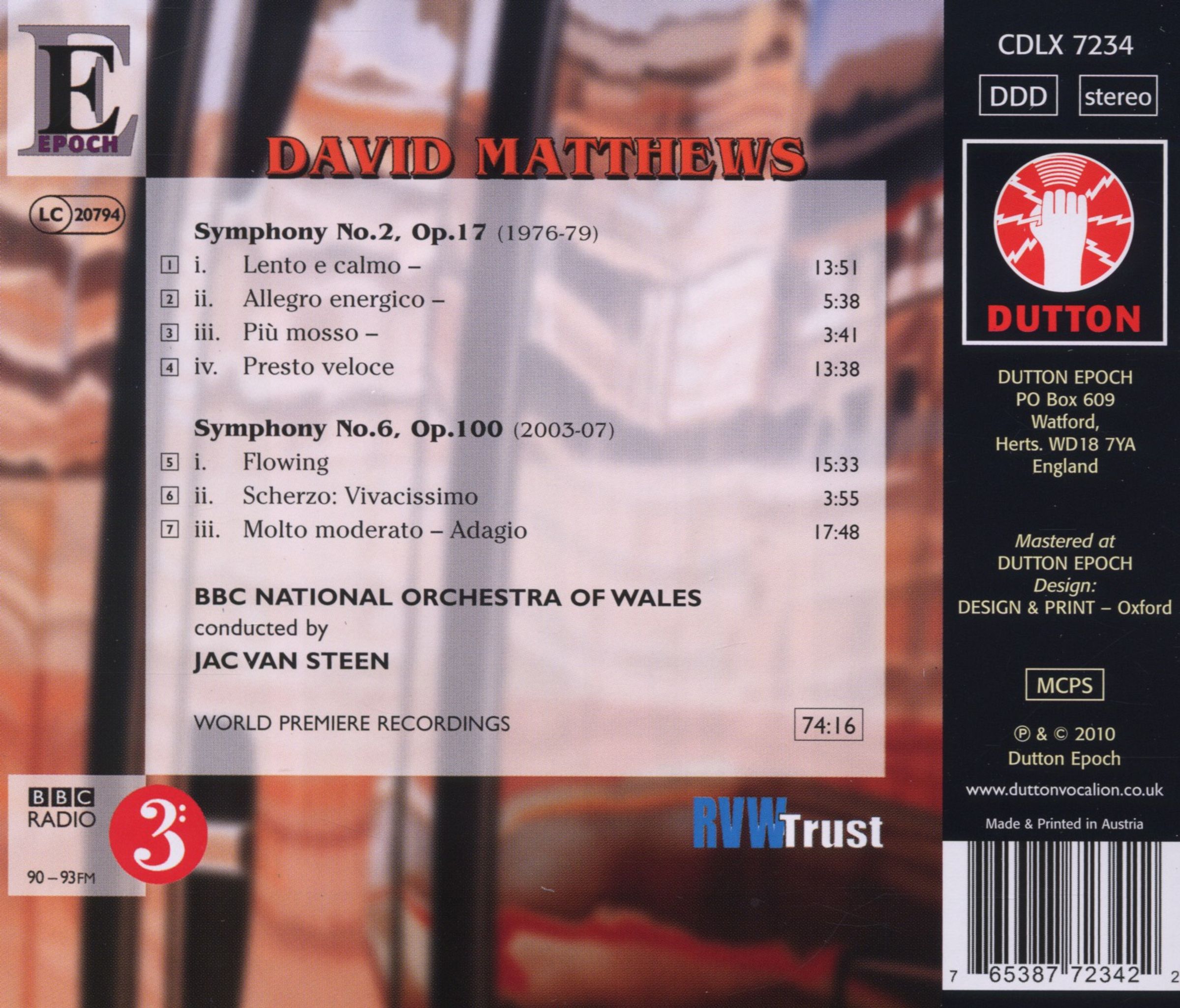 David Matthews: Symphonien Nr.2 & 6 auf CD