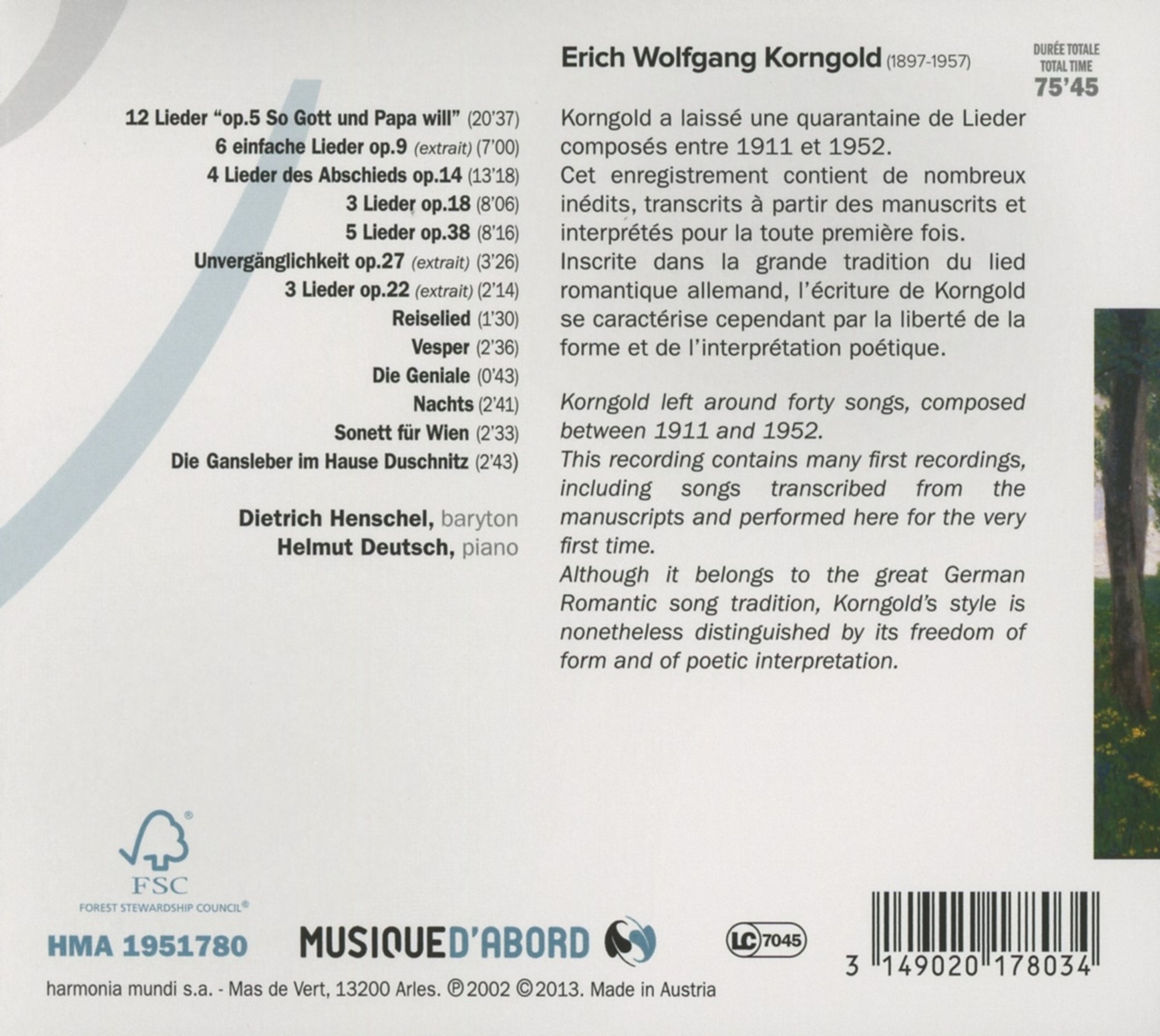 Erich Wolfgang Korngold: Lieder auf CD