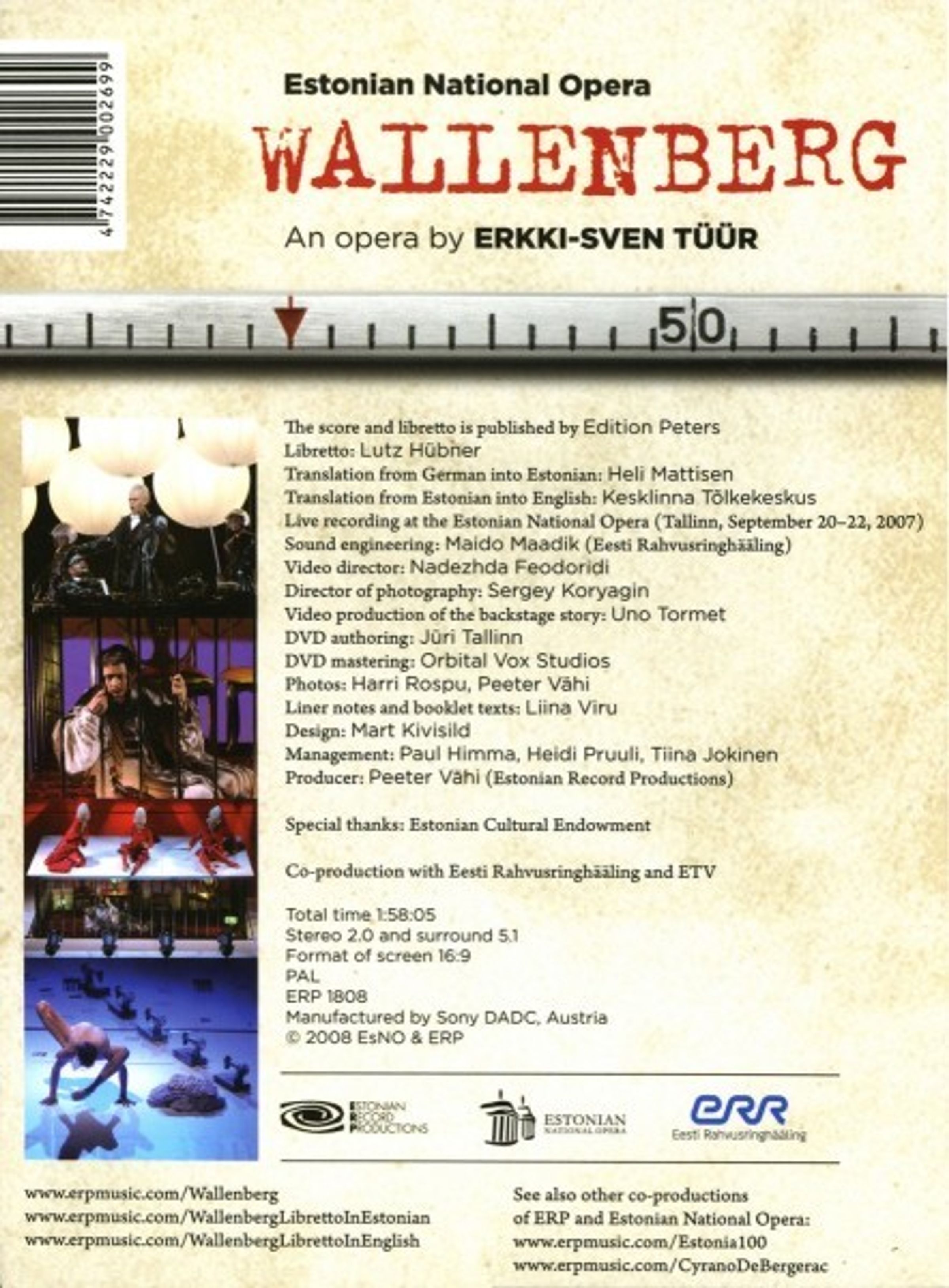 Der estnische Komponist Erkki-Sven Tüür beschreibt in seiner 2001 in Dortmund uraufgeführten Oper die Taten des schwedischen Diplomaten Raoul Wallenberg, der 1944 in Budapest mittels schwedischer Pässe tausende Juden vor dem sicheren Tod rettete. Tüür hat aus dem Stoff nach dem Libretto von Lutz Hübner eine packende, mitfühlende Oper geschaffen. Das Werk stellt in seinen neunzehn Szenen neben historischen Fakten auch rein Spekulatives (so kommt es u. a. zu einer fiktiven Zusammenkunft mit Adolf Eichmann) oder philosophische Reflexionen dar. Die Oper endet, besonders angesichts des damaligen Desinteresses der Westmächte an Wallenbergs nie aufgeklärtem Schicksal nach seiner Inhaftierung durch die Sowjets, mit einem geradezu grotesk anmutenden Nachspiel, wenn nämlich Ronald Reagan Wallenberg zum amerikanischen Ehrenbürger ernennt, während Museumsbesucher einen goldenen Schutzpass betrachten. Die DVD bringt eine Inszenierung der Estnischen Nationaloper in Tallinn aus dem Jahre 2008, die übrigens mit dem Kulturpreis Estlands ausgezeichnet wurde. Zusammen mit der diesjährigen Produktion am Badischen Staatstheater in Karlsruhe belegt sie die nachhaltige Publikumswirksamkeit des Stückes.
