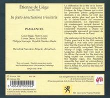 Etienne de Liege: In Festo Sanctissima Trinitatis auf CD