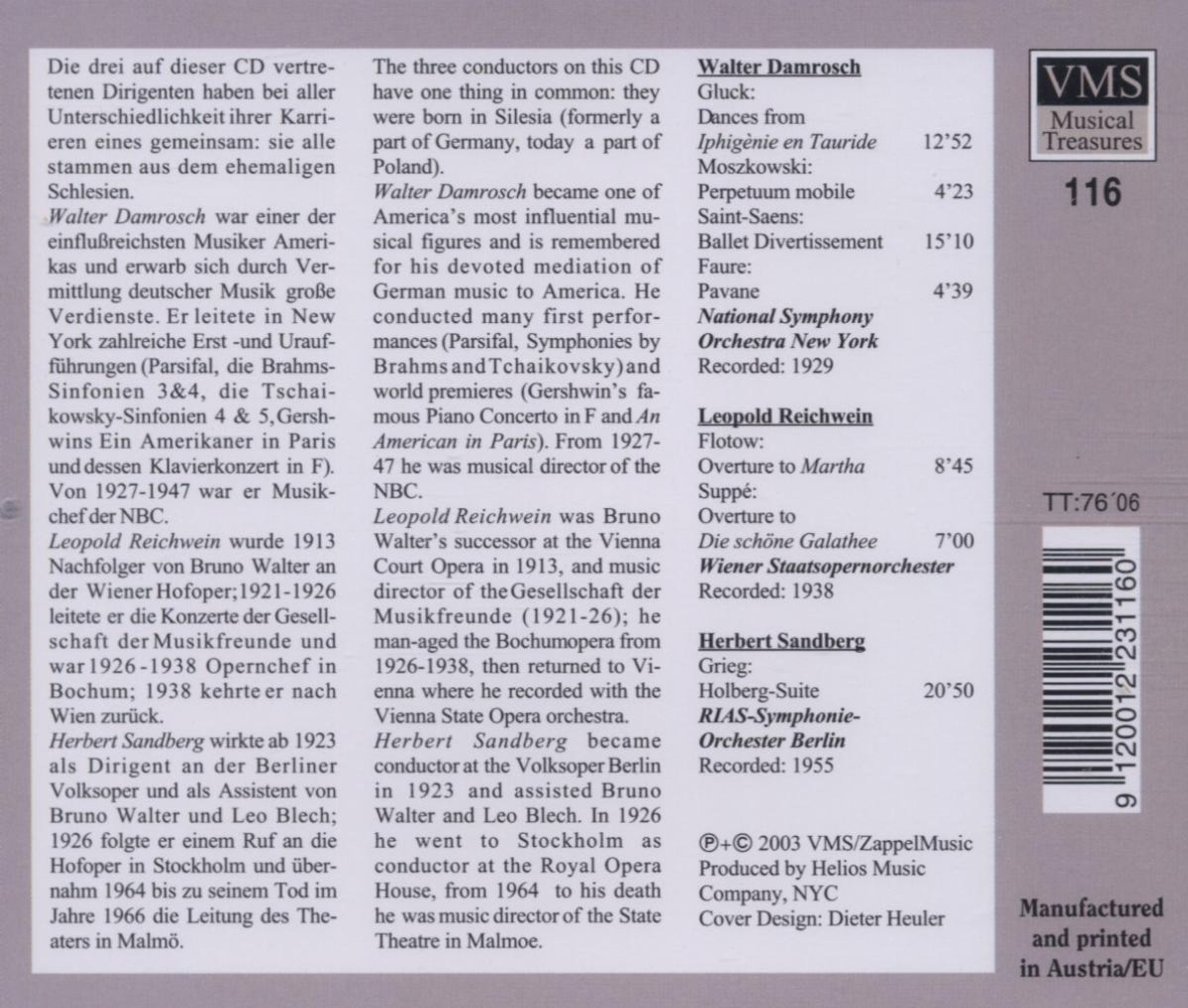 - National Symphony Orchestra New York, Orchester der Wiener Staatsoper, RIAS Symphonie-Orchester Berlin, Walter Damrosch, Leopold Reichwein, Herbert Sandberg