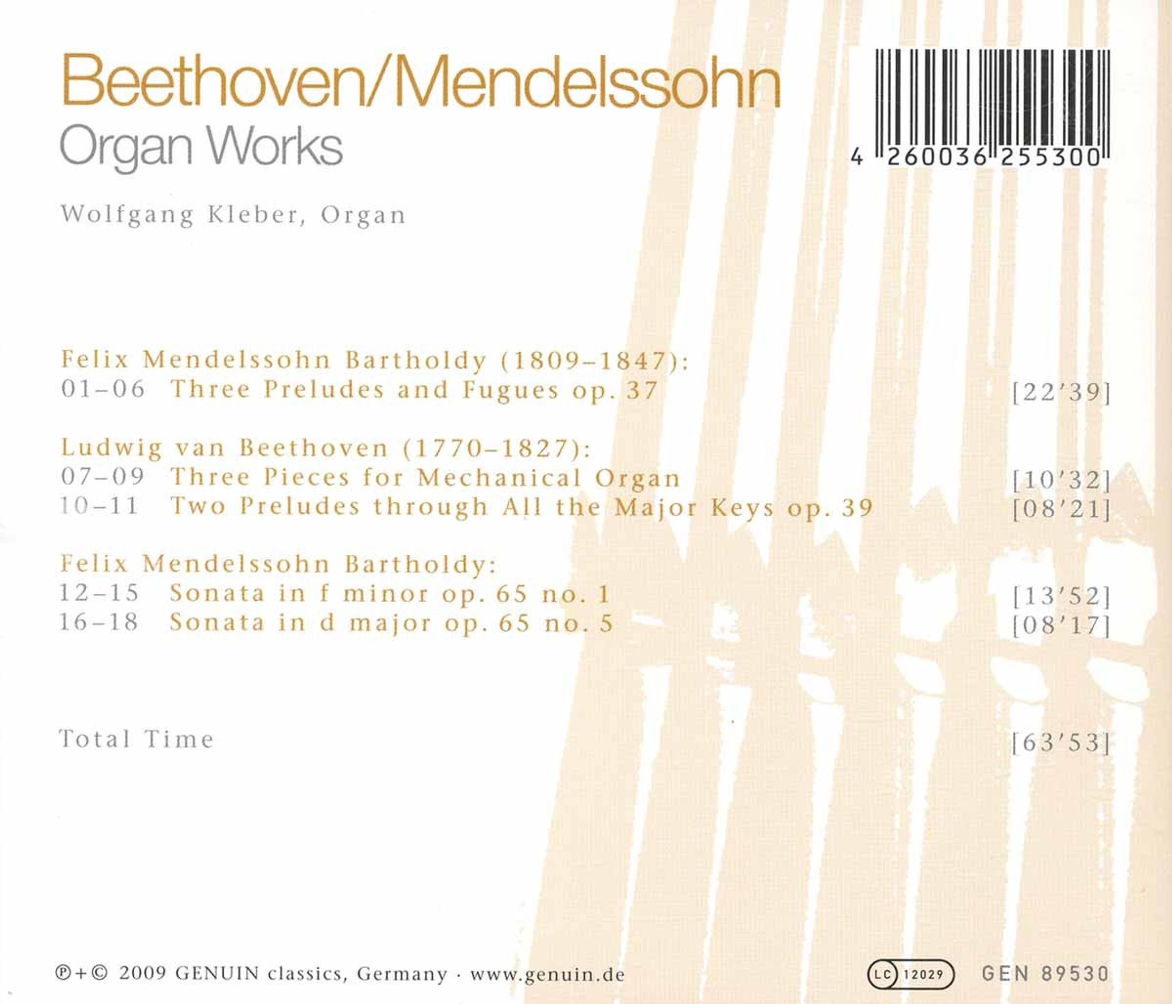 Dass uns Felix Mendelssohn Bartholdy wunderbares Repertoire geschenkt hat, ist wohl allgemein bekannt. Aber dass auch Beethoven für Orgel geschrieben hat, woran uns Wolfgang Kleber auf der neuen GENUIN-CD erinnert, ist sicherlich für viele Musikliebhaber eine Überraschung: Die schmucke Dietz-Orgel von 1814 klingt kompakt und klar und bringt die Vorzüge dieser Musik »aus einer verlorenen Zeit« hervorragend zur Geltung.