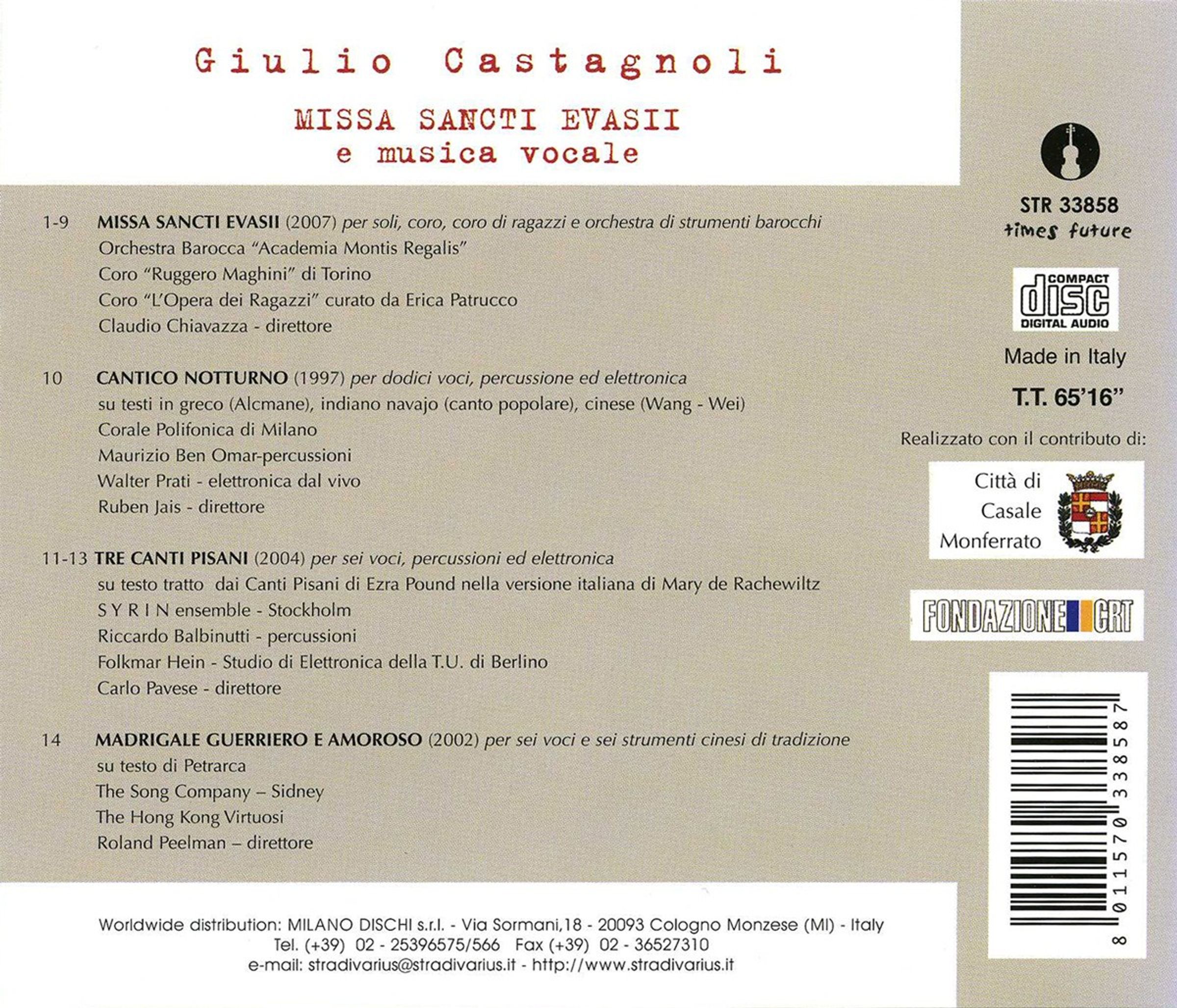 Giulio Castagnoli (geb. 1958): Missa Sancti Evasii, CD