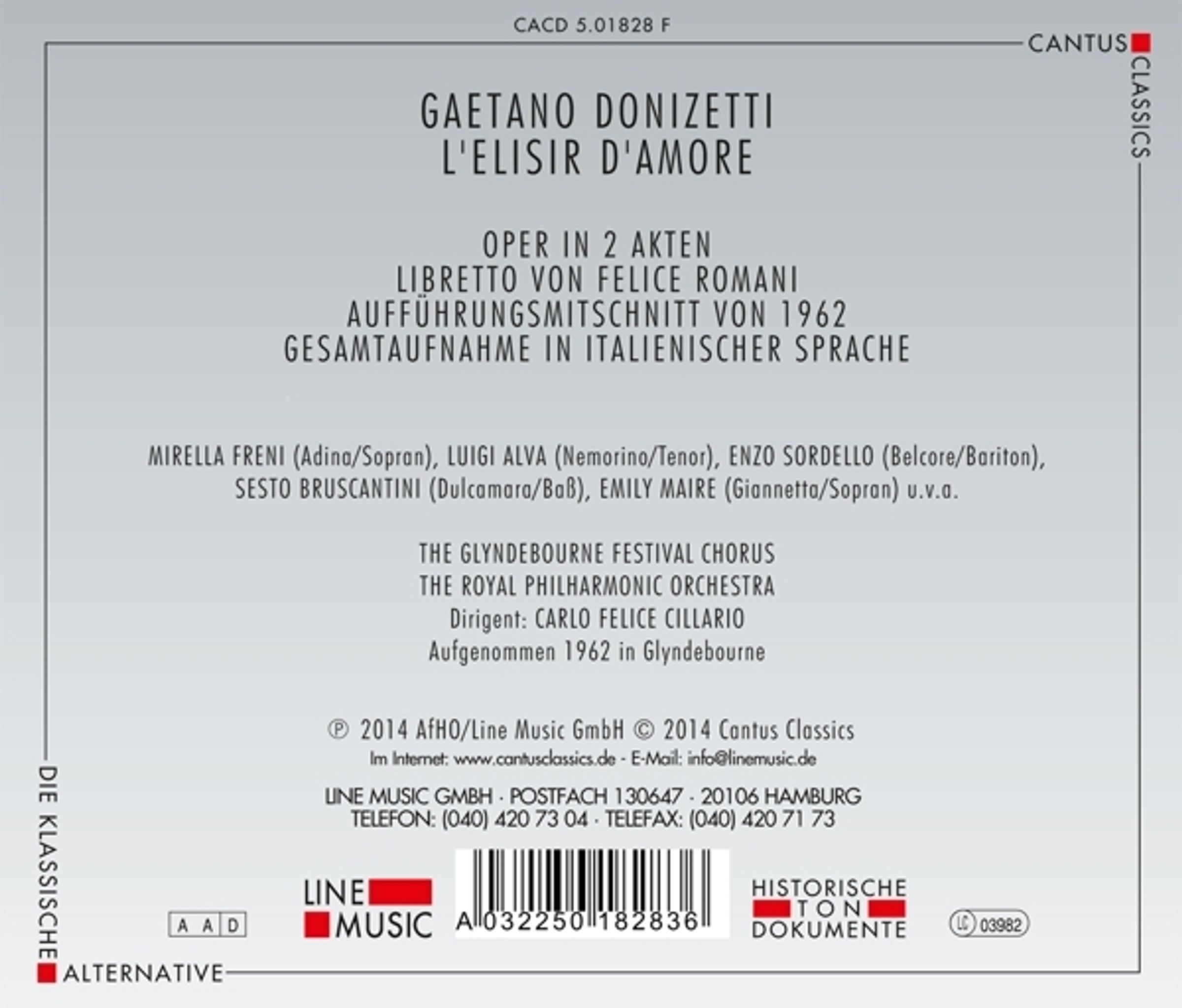 Mirella Freni, Luigi Alva, Emily Maire, Sesto Bruscantini, Glyndebourne Chorus, Royal Philharmonic Orchestra, Carlo Felice Cillario