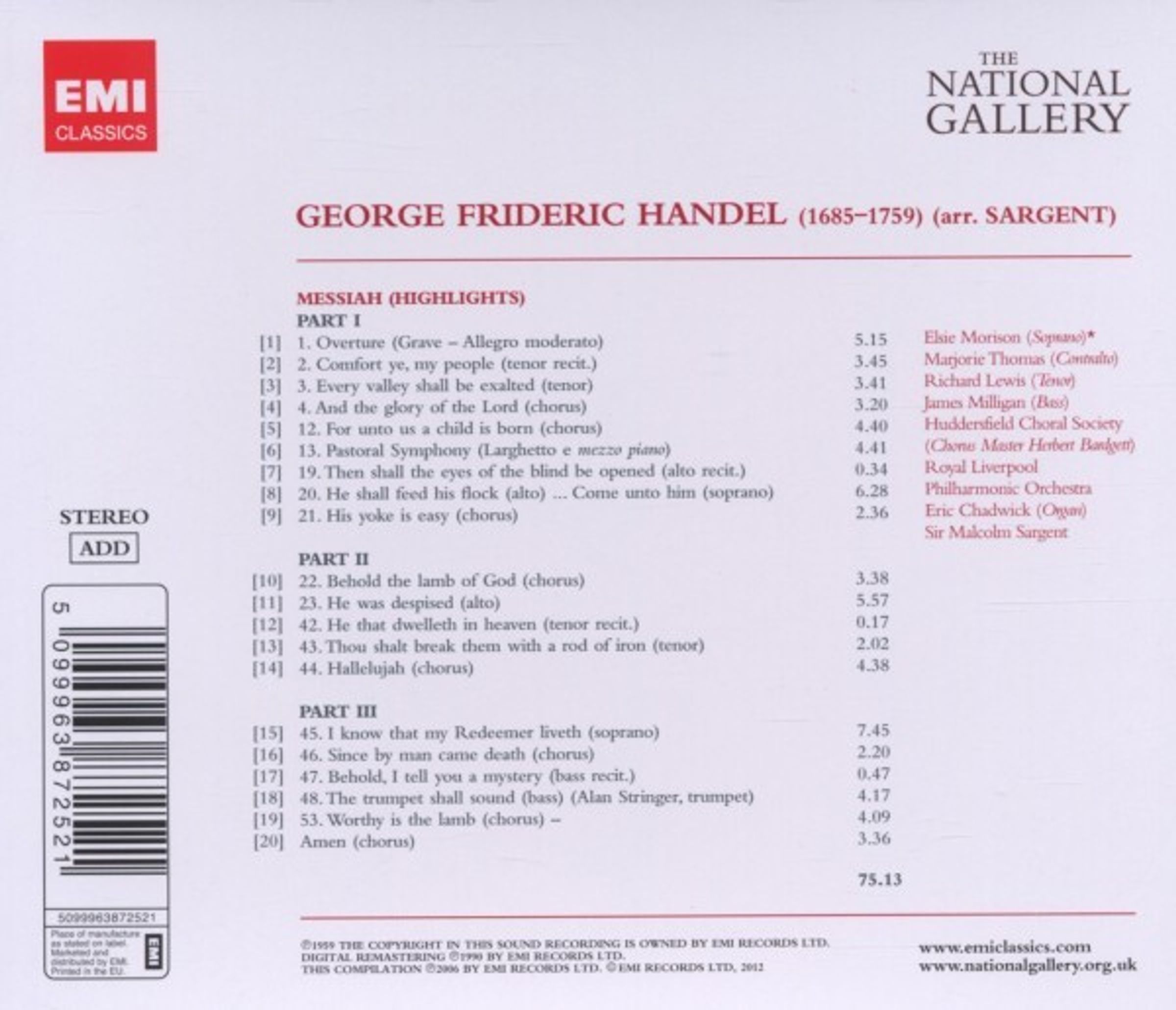 Elsie Morison, Marjorie Thomas, Richard Lewis, James Milligan, Royal Liverpool Philharmonic Orchestra, Malcolm Sargent