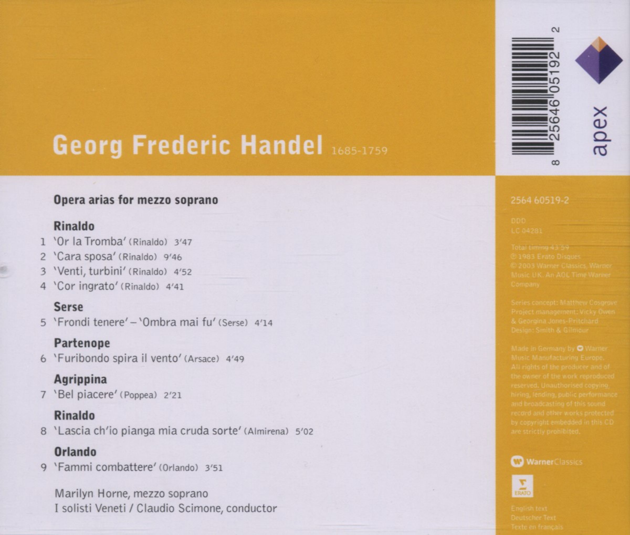 aus Agrippina, Orlando, Partenope, Rinaldo, Xerxes