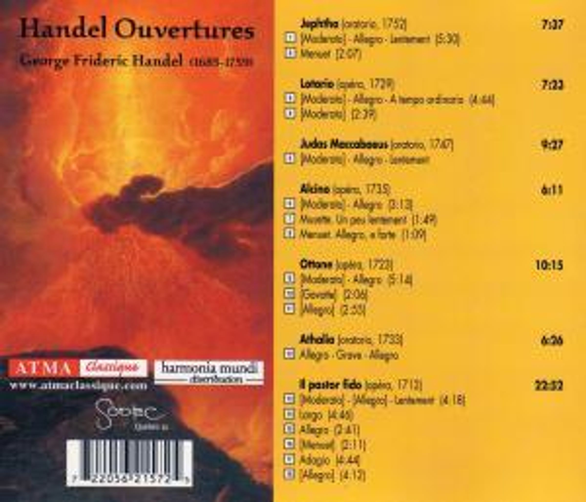 Ouvertüren aus Jephtha, Lotario, Judas Maccabaeus, Alcina, Ottone, Athalia, Il pastor fido