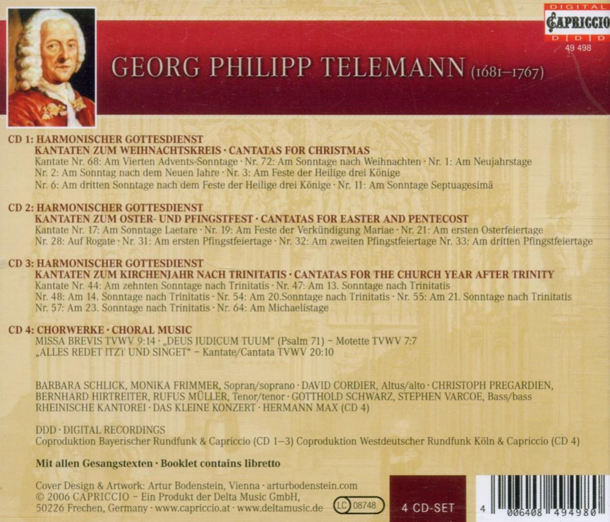 Georg Philipp Telemann: Kantaten aus "Harmonischer Gottesdienst" auf 4 CDs