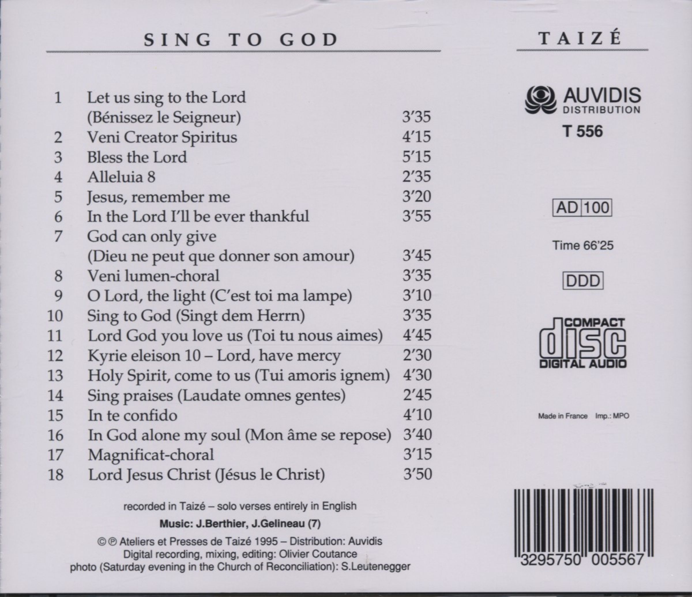 Let us sing to the Lord; Veni Creator Spiritus; Bless the Lord: Alleluia 8; Jesus, remember me; In the Lord I'll be ever thankful; God can only give; Veni lumen-choral; O Lord, the light; Sing to God; Lord God you love us; Kyrie eleison 10 - Lord, have mercy; Holy Spirit, come tu us; Sing praises; In te confido; In God alone my soul; Magnificat-choral; Lord Jesus Christ