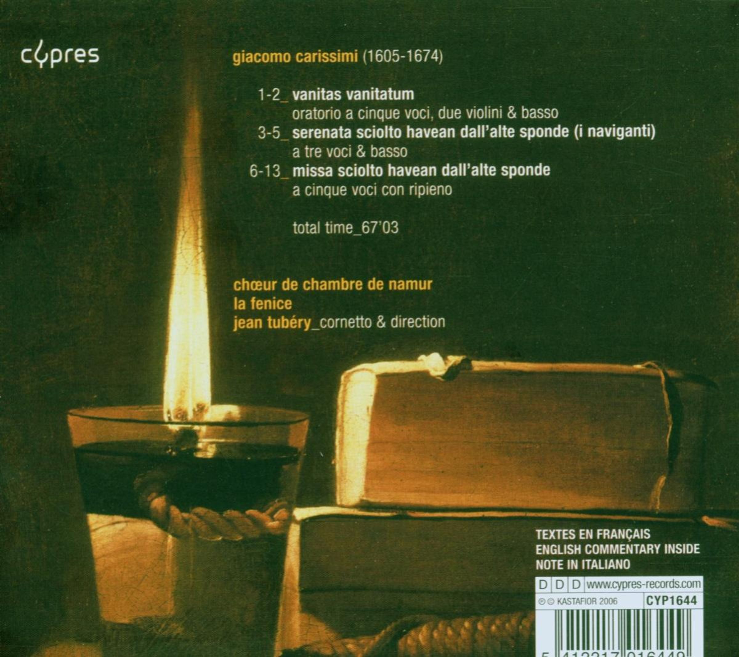 Giacomo Carissimi (1605-1674) ist eine der einflussreichsten Gestalten des römischen Musiklebens im 17.Jahrhundert. Von den Zeitgenossen hoch geschätzt, blieben seine Werke auch nach seinem Tod unter Verschluss und durften bei Strafe der Exkommunizierung nicht einmal kopiert werden. Jean Tubéry und das Ensemble La Fenice präsentieren uns mit einer dramatischen Motette, einer weltlichen Kantate und einer Messe auf dieser CD ein differenzierteres Bild des Komponisten.