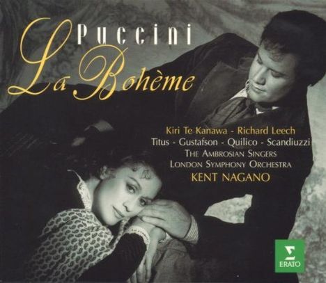 FonoForum 12/1995: »Kiri Te Kanawa hat nach 50 Lebensund 30 Bühnenjahren kaum etwas vom jugendlichen Reiz ihrer Stimme verloren. Dass sie sich nicht mehr allein auf diesen Reiz verlässt, sondern einen deutlichen Charakter formt und mit delikater Phrasierung ihre Puccini-Kompetenz beweist, macht den besonderen Rang ihrer Mimi aus. Richard Leech hält mit seinem hell-metallischen, in der Höhe wunderbar frei schwingenden und durchschlagskräftigen Tenor wirkungsvoll dagegen.«Disk 1 von 2 (CD)