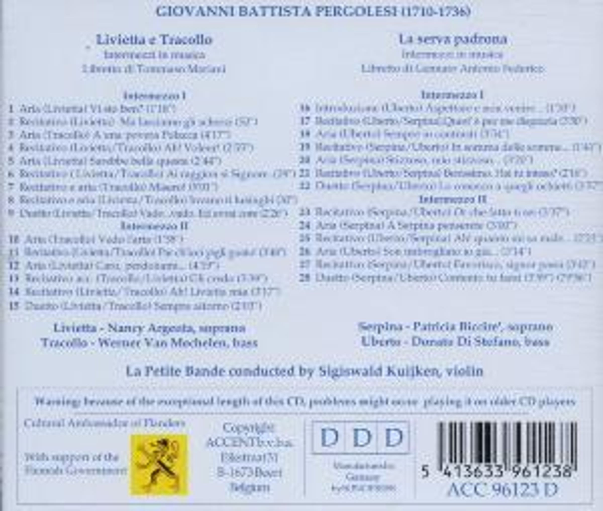 - Nancy Argenta, Werner van Mechelen, Patricia Biccire, La Petite Bande, Sigiswald Kuijken