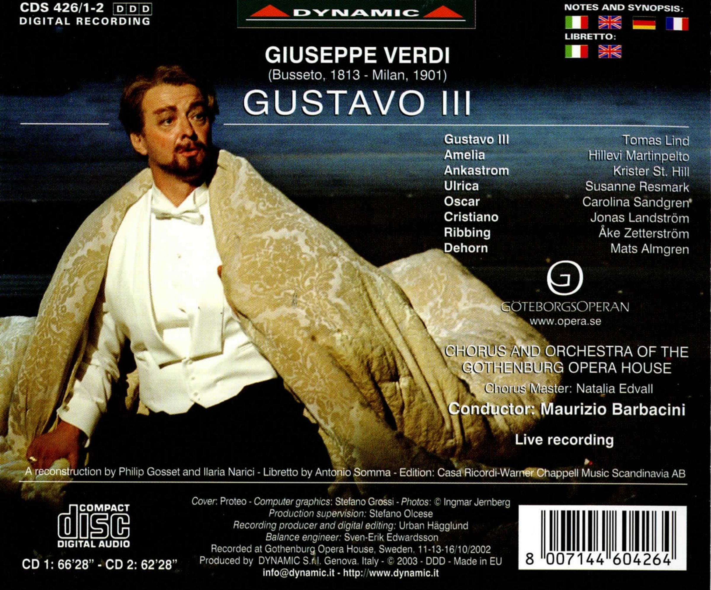 Dank der Zusammenarbeit zwischen dem Göteborger Opernhaus und Dynamic liegt nun eines der größten Meisterwerke Verdis in der ursprünglichen Fassung vor; zusammen mit Macbeth (CDS 194 / 1-2) und Simon Boccanegra (CDS 268 / 1-2) trägt es zur Wiederentdeckung der Originalpartituren des Komponisten bei.