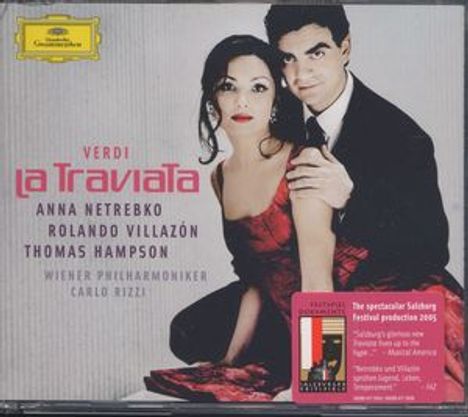 Stereo 01/06: "Anna Netrebko gestaltet mit schlanker Stimme und einer Mezza voce, die nicht weniger zu fesseln vermag als das Standvermögen in den dramatischen Ausbrüchen. Fabelhaft, wie die Netrebko ihre Koloraturarie zu beeindruckender Bravour nutzt. Bei aller Spielfreudigkeit und stimmlichen Brillanz - der wirkliche Star dieser Einspielung heißt wohl Rolando Villazon. Der gibt einen Alfredo von sympathischer Naivität - ein Belcanto-Tenor mit Kraft, Glanz und fabelhaften Spitzentönen. Souverän Thomas Hampson als Georgio Germont."Tracklisting