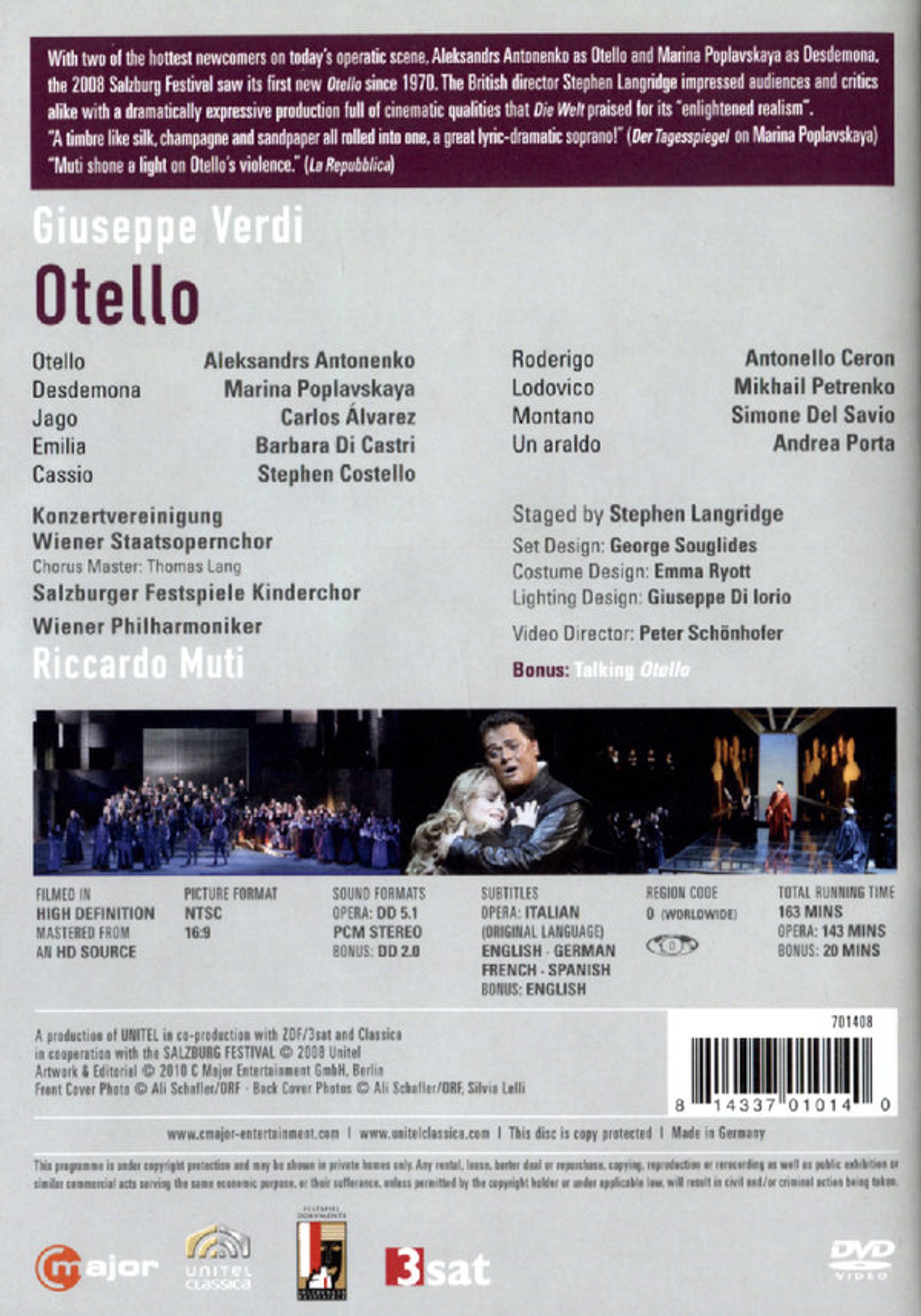 - Aleksandr Antonenko, Marina Poplavskaya, Carlos Alvarez, Barbara di Castri, Stephen Costello, Chor der Wiener Staatsoper, Wiener Philharmoniker, Riccardo Muti