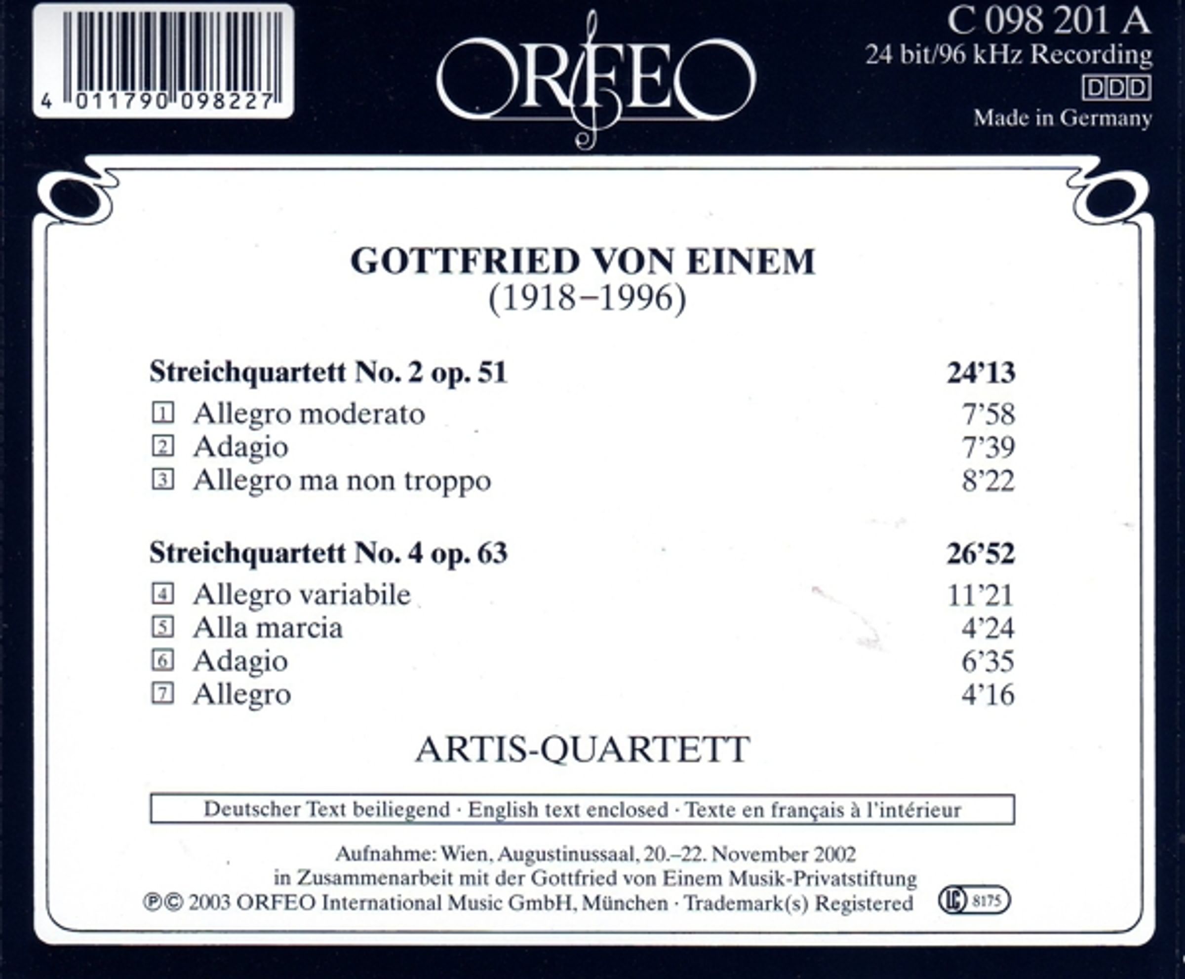 Gottfried von Einem: Streichquartette Nr.2 & 4 auf CD
