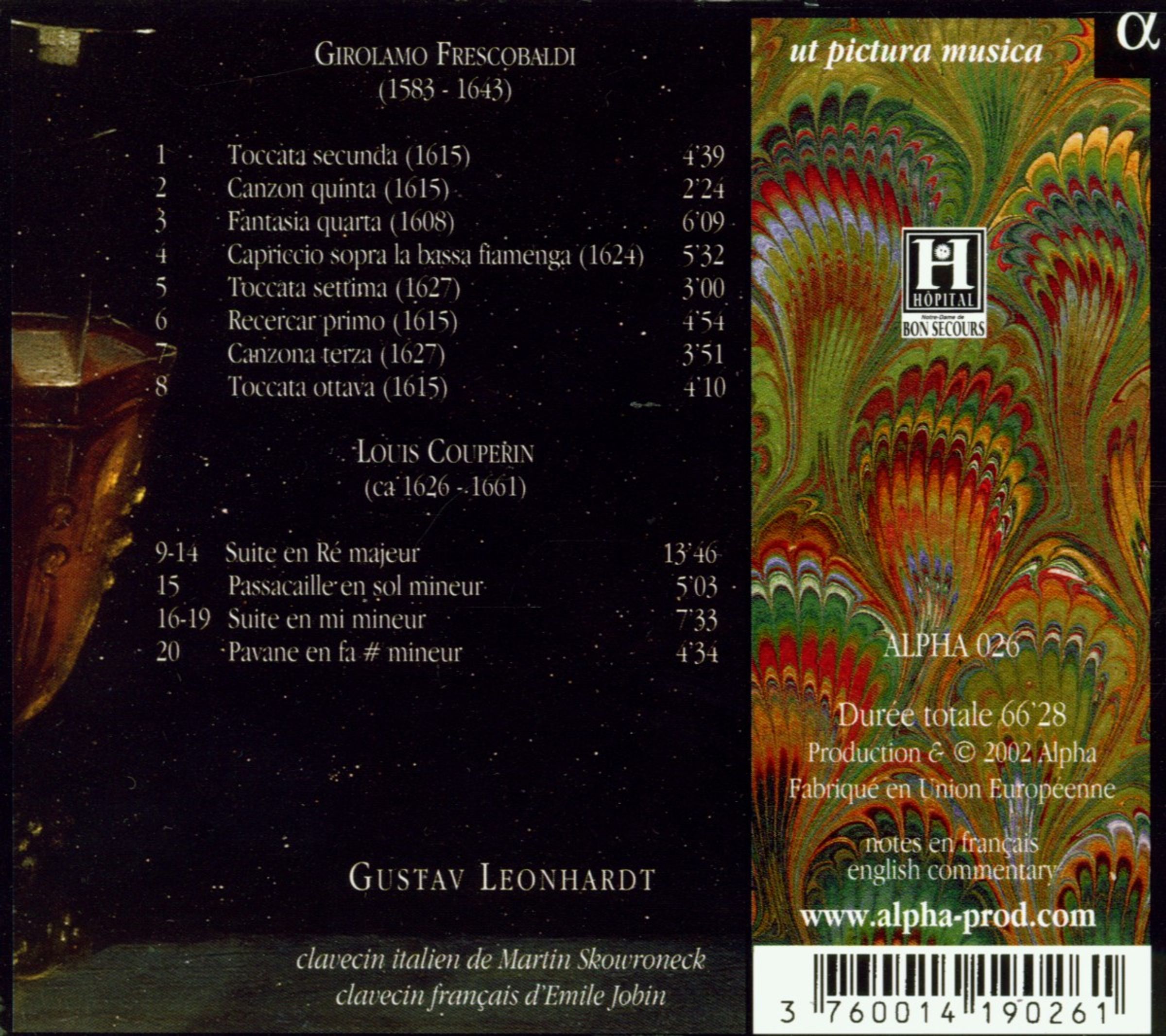 Frescobaldi: Toccaten Nr. 2, 7, 8; Canzonen Nr. 3 & 5; Fantasia Nr. 4 "Sopra doi soggetti"; Ricercar Nr. 1; Capriccio sopra la Bassa Fiamenga