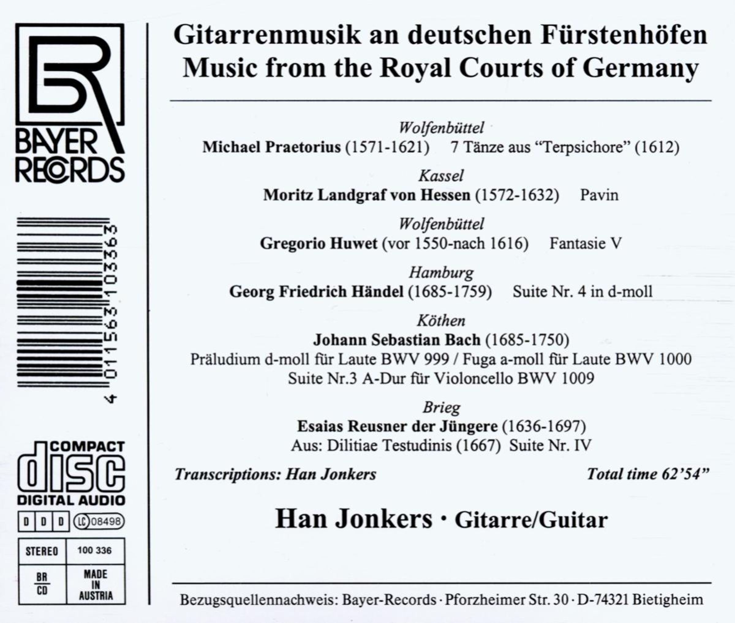 Han Jonkers - Gitarrenmusik an deutschen Fürstenhöfen auf CD