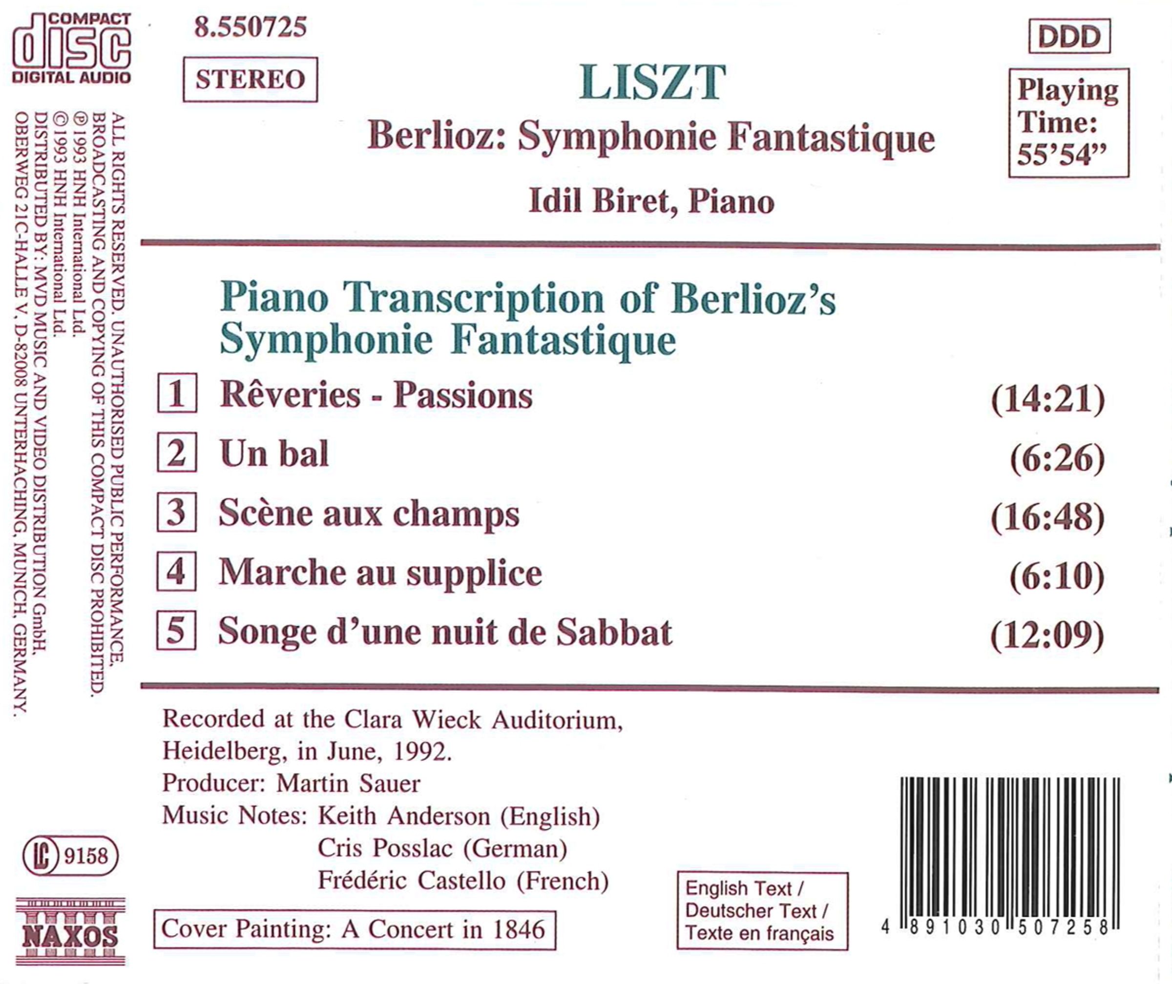 Classic CD 5/94:"Hier nun liegt Idil Birets brillante Aufnahme der Liszt'schen erstaunlich effektiven Klaviertranskription von Berlioz 'Symphonie fantastique' vor,die farbenfroher, temperamentvoller und aufregender ist,als viele der Orchesterversionen.Eine pianistische 'tour de force' - ausgezeichnet aufgenommen."Disk 1 von 1 (CD)