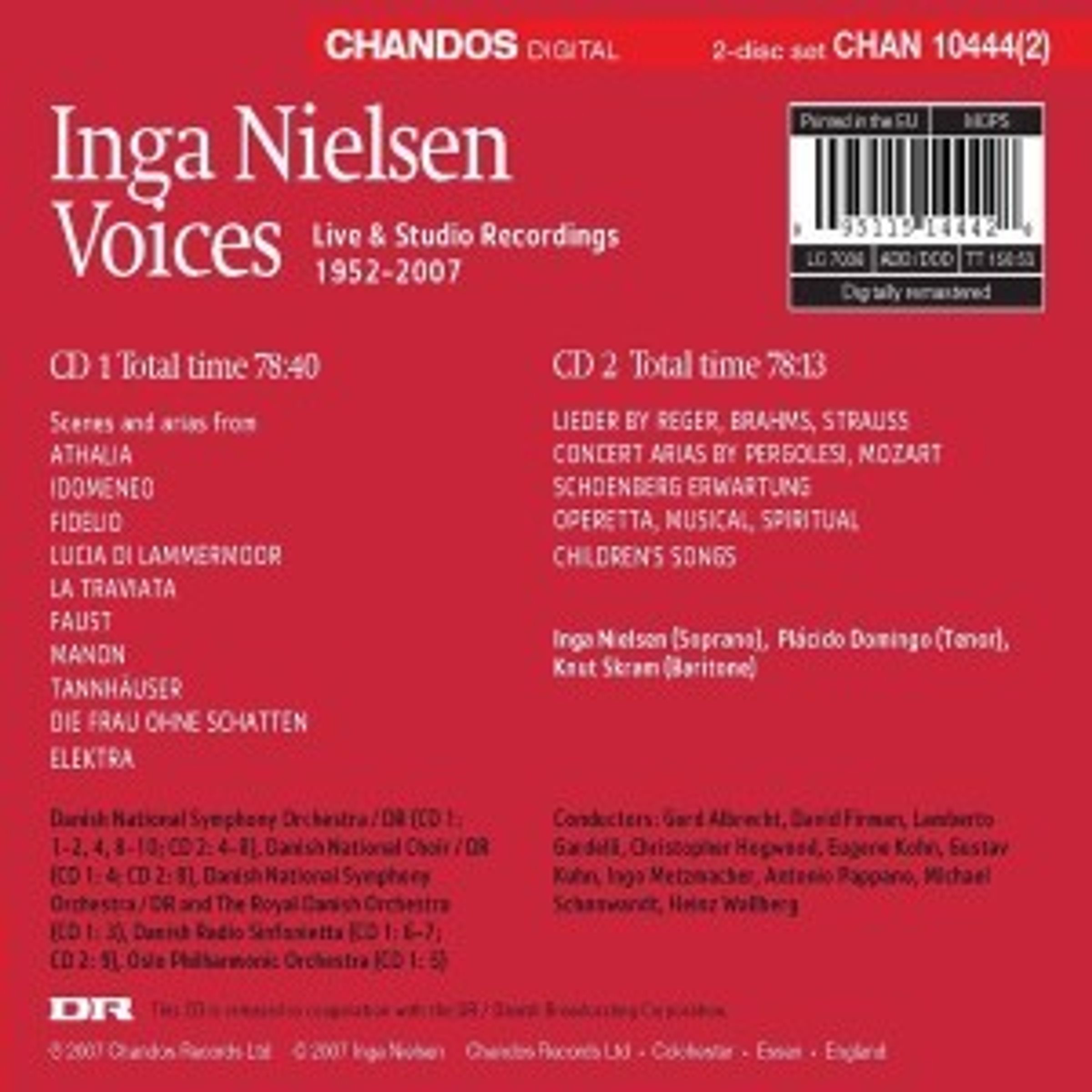 - Inga Nielsen, Placido Domingo, Danish National SO, Royal Danish Symphony Orchestra, Danish Radio Sinfonietta, Christopher Hogwood, Gustav Kuhn, Gerd Albrecht, Antonio Pappano, Michael Schönwandt, Heinz Wallberg u. a.