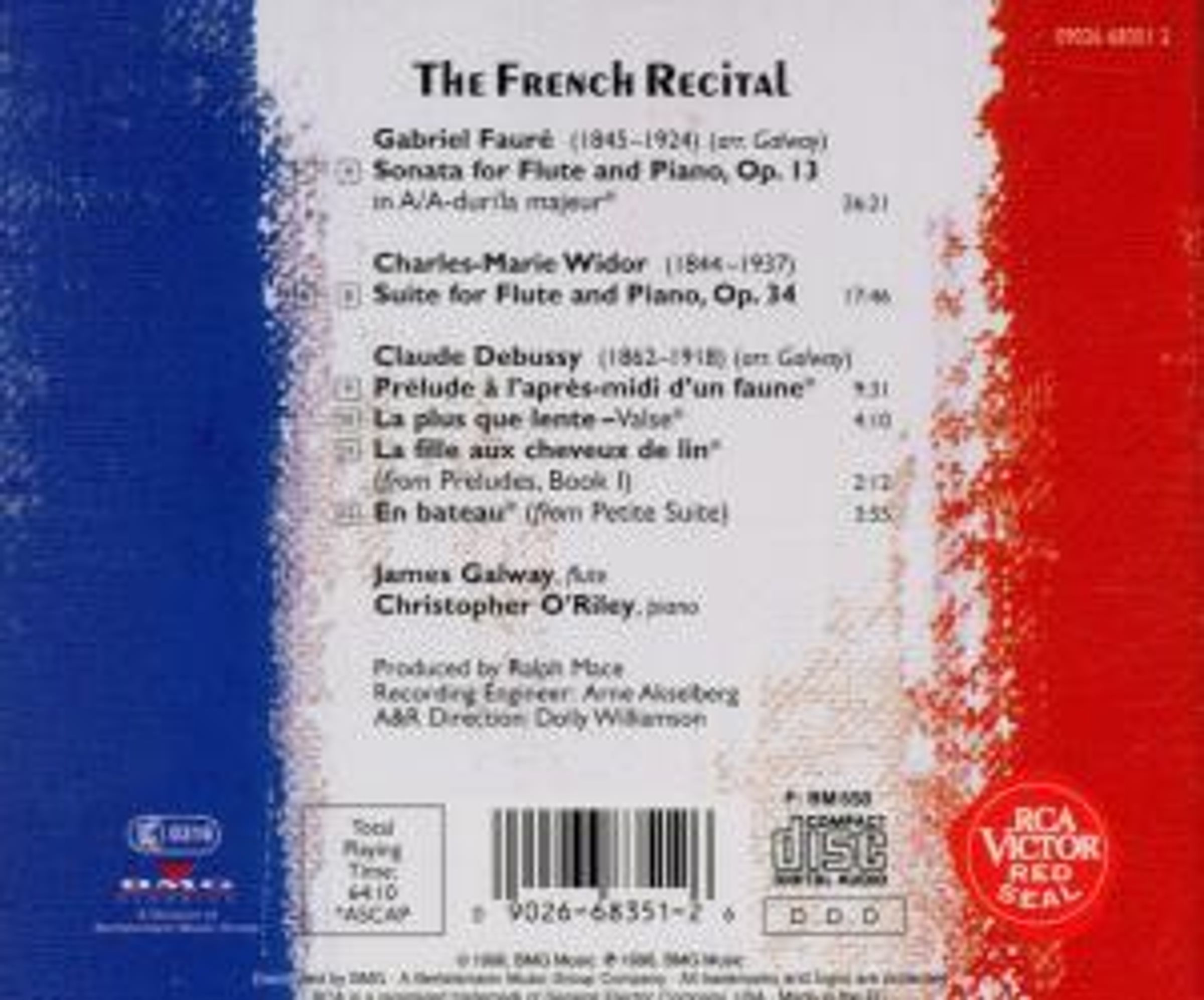 G. Schließ in FonoForum 5/96: "Die Aufnahme zeigt James Galway auf der Höhe seiner Kunst. Ins- besondere der "Nachmittag eines Fauns" wird genial inszeniert, wobei Christopher O'Riley die Illusion einer orchesterähnlichen Klang- farbenpalette erzeugt."Disk 1 von 1 (CD)