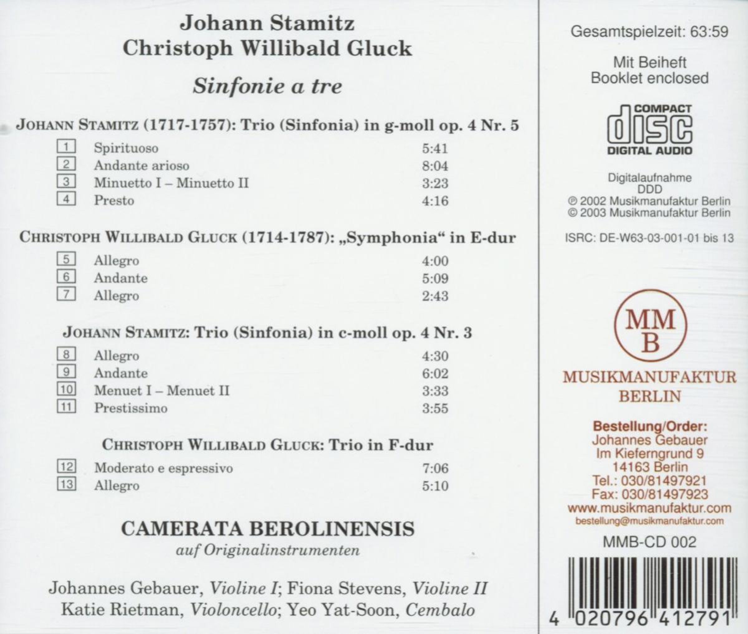 +Gluck: Trio ("Symphonia") E-Dur; Trio F-Dur
