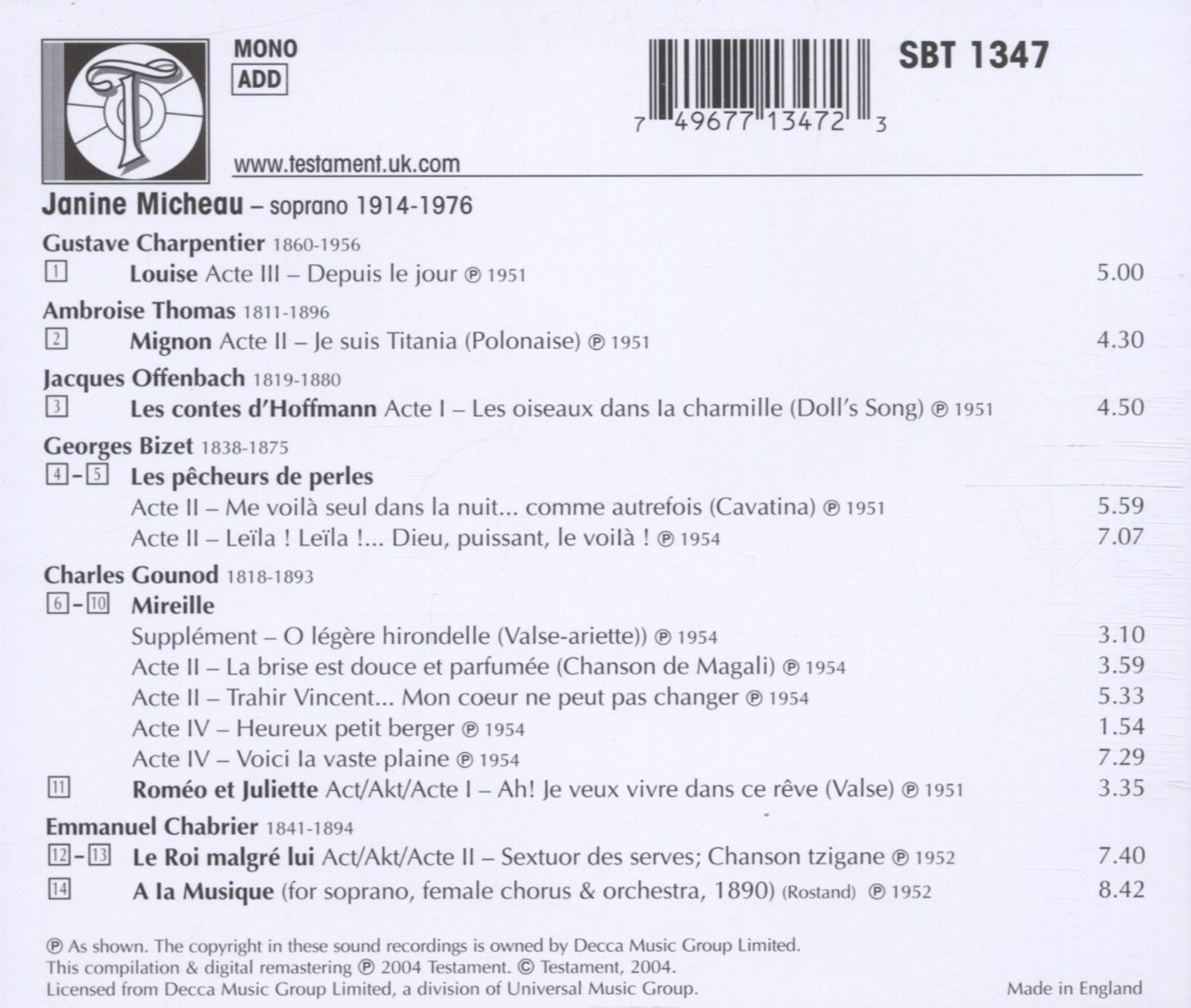 Arien von Charpentier, Thomas, Offenbach, Bizet, Gounod, Chabrier