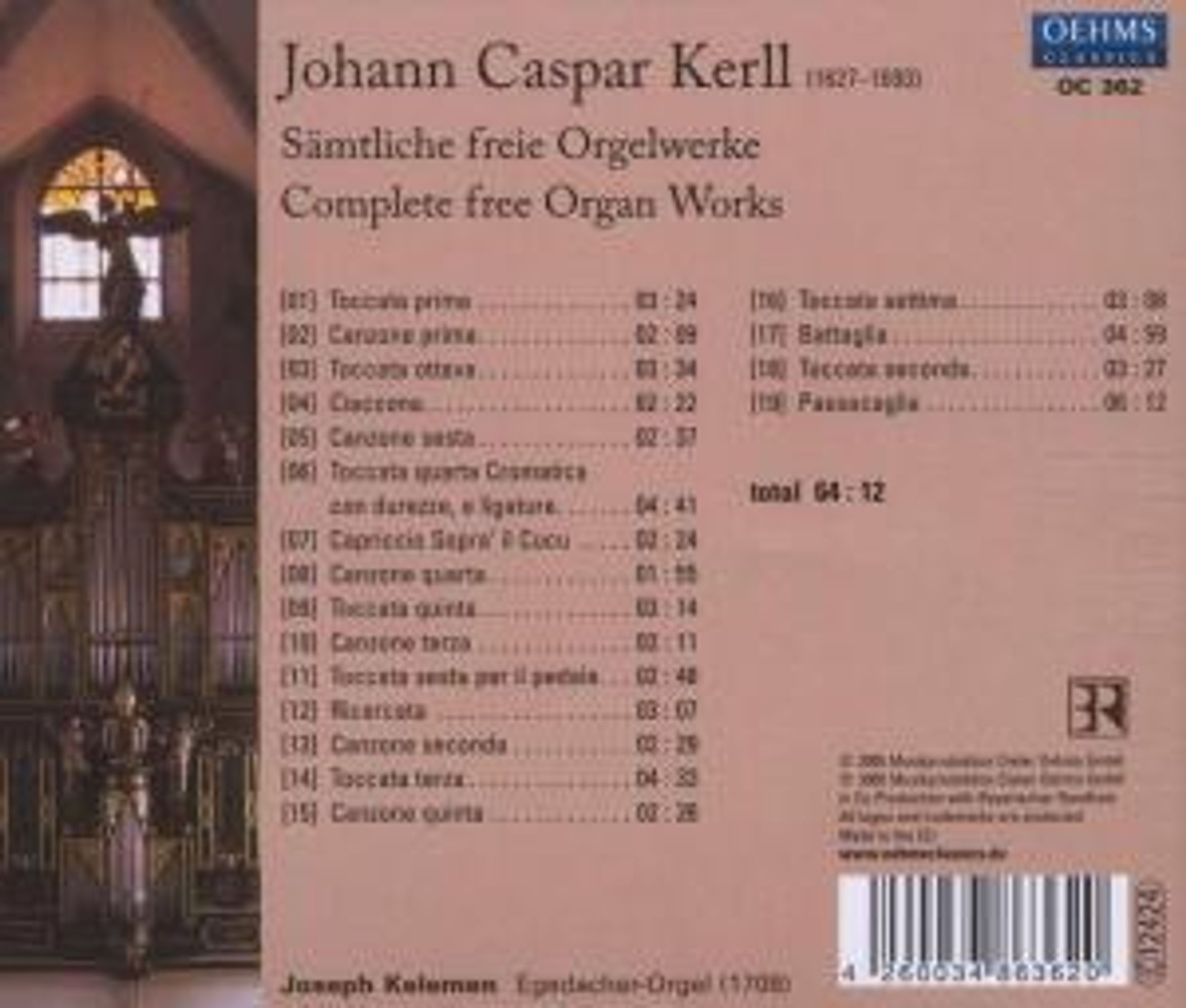 Joseph Kelemen stellt auf dieser CD die gesamte freie Tastenmusik von Johann Kaspar Kerll vor. Seine Tonsprache ist mit ihrem hohen Grad an Virtuosität stark von italienischen Einflüssen geprägt. Gerade die explizit für die Orgel komponierten Werke schöpfen alle klanglichen und technischen Ressourcen der damaligen Orgeln aus. Die vorliegende Aufnahme entstand an der historischen Egedacher-Orgel von Stift Schlägl in Oberösterreich. (OehmsClassics)