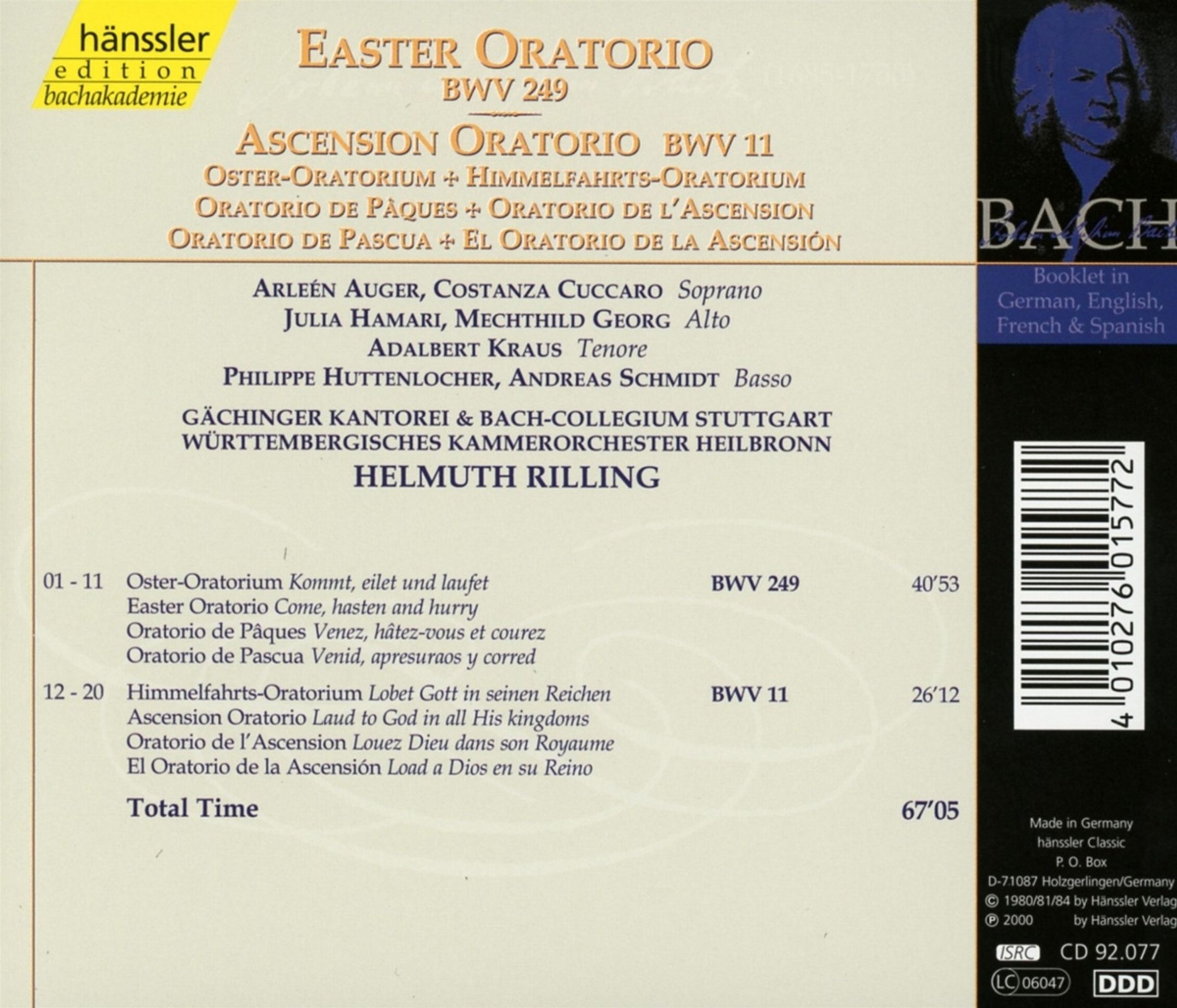 - Arleen Auger, Costanza Cuccaro, Julia Hamari, Mechthild Georg, Adalbert Kraus, Andreas Schmidt, Gächinger Kantorei Stuttgart, Bach-Collegium Stuttgart, Württembergisches Kammerorchester Heilbronn, Helmuth Rilling