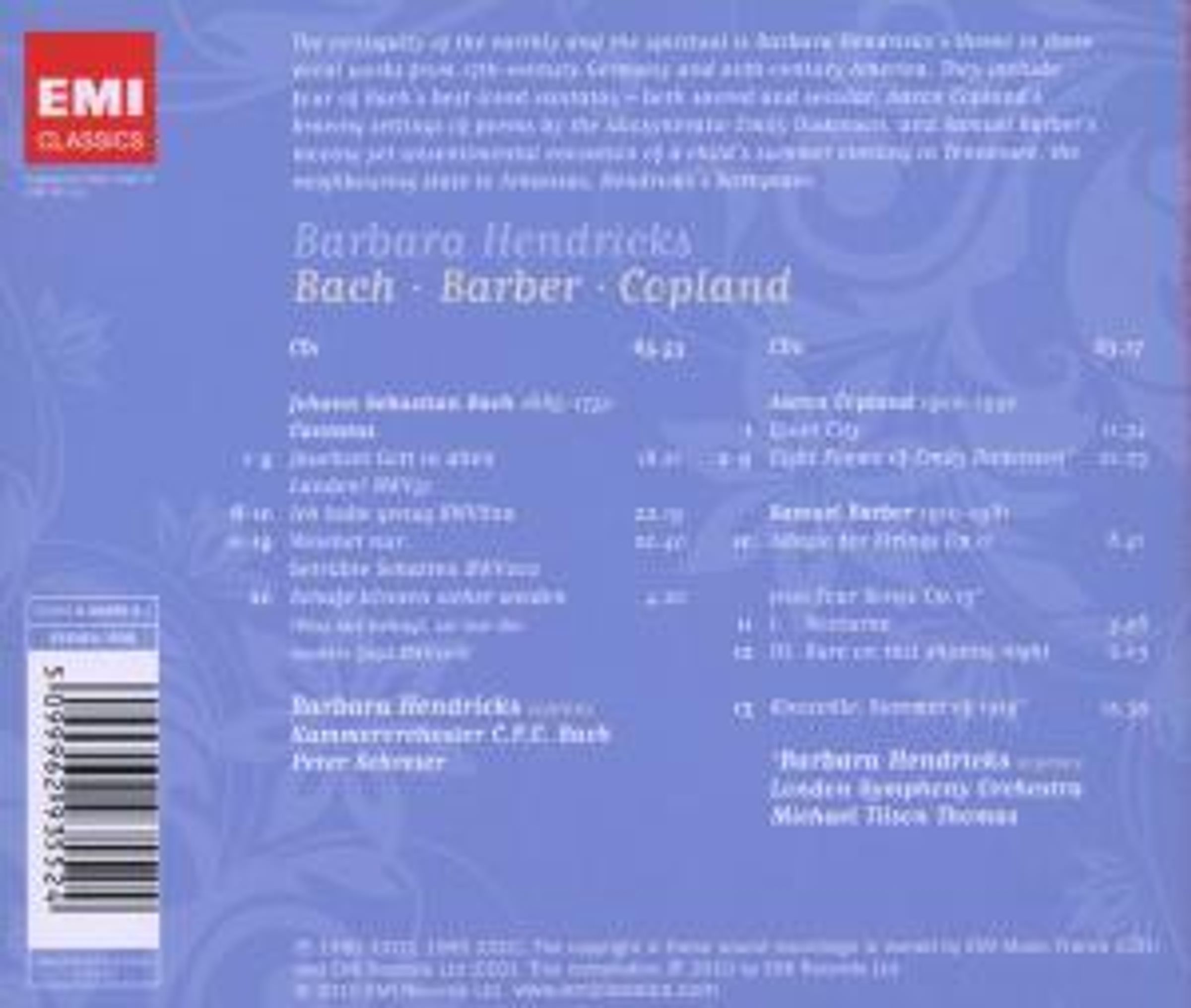 - Barbara Hendricks, Kammerorchester Carl Philipp Emanuel Bach, Peter Schreier; Barbara Hendricks, London Symphony Orchestra, Michael Tilson Thomas