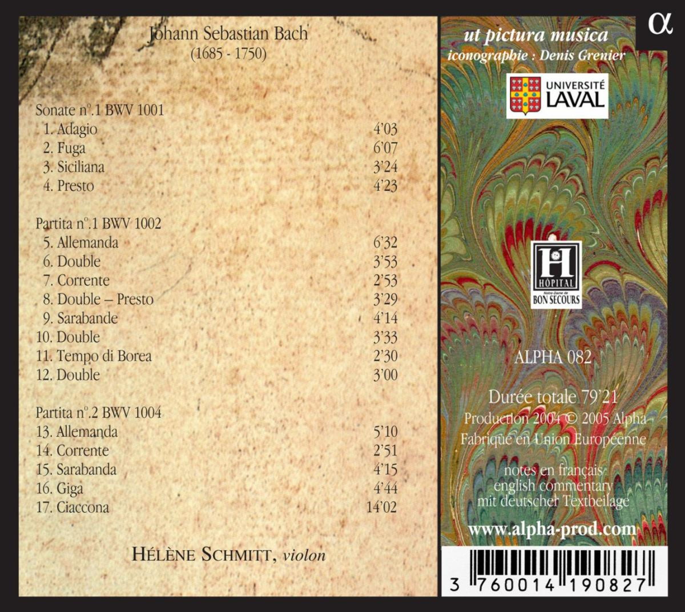 Nach wie vor sind die sechs Sonaten und Partiten Bachs ein gefürchteter Prüfstein für jeden Geigenvirtuosen, der nicht nur spieltechnisch, sondern auch hinsichtlich der musikalischen Inspiration dem Spieler alles abverlangt. Mit der französischen Geigerin Hélène Schmitt hat ALPHA allerdings auch eine Musikerin, die den Anforderungen Bachs mehr als nur gerecht wird. Ihr Anliegen ist es, vor allem die emotionalen Aspekte der sechs Werke dem Hörer deutlich zu machen. Selbstbewusst wartet sie aber auch gleich in der ersten Folge mit der Partita d-Moll BWV 1004 mit der großartigen Ciaccona auf. Vor der Konkurrenz braucht sich Hèlène Schmitt eben nicht zu fürchten.