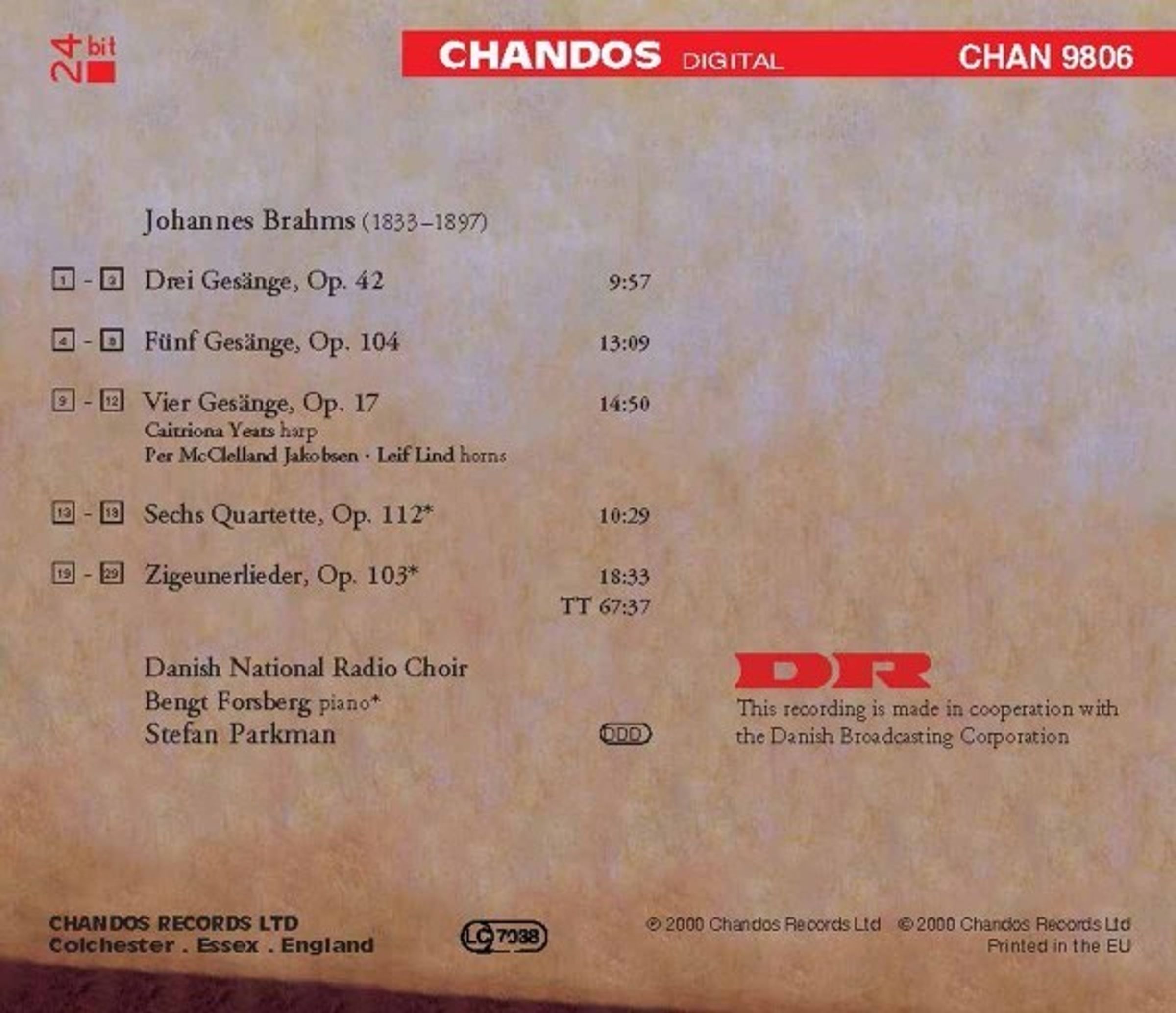 Johannes Brahms: Chorlieder opp.17,42,103,104,112 auf CD