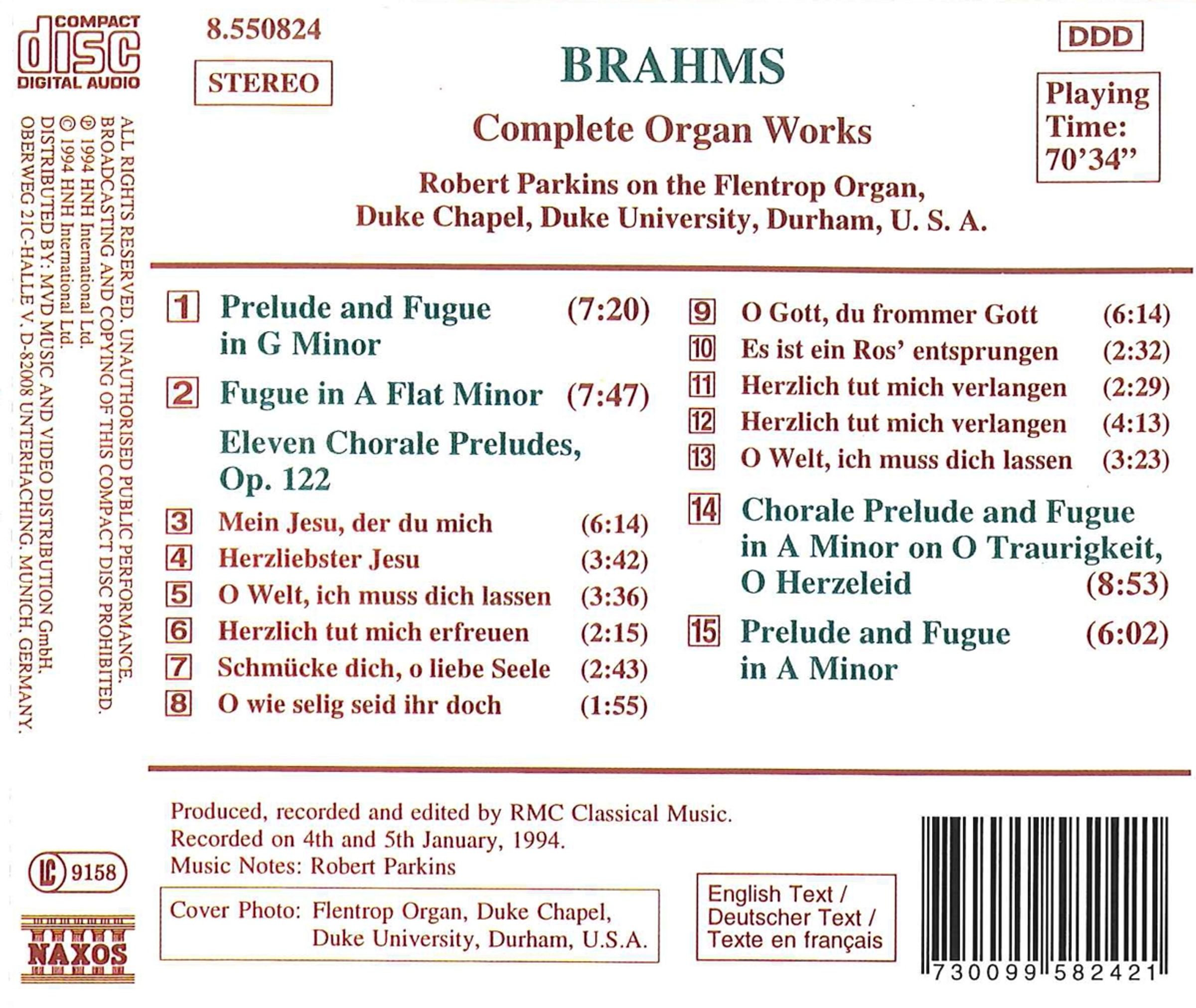 Johannes Brahms: Orgelwerke auf CD