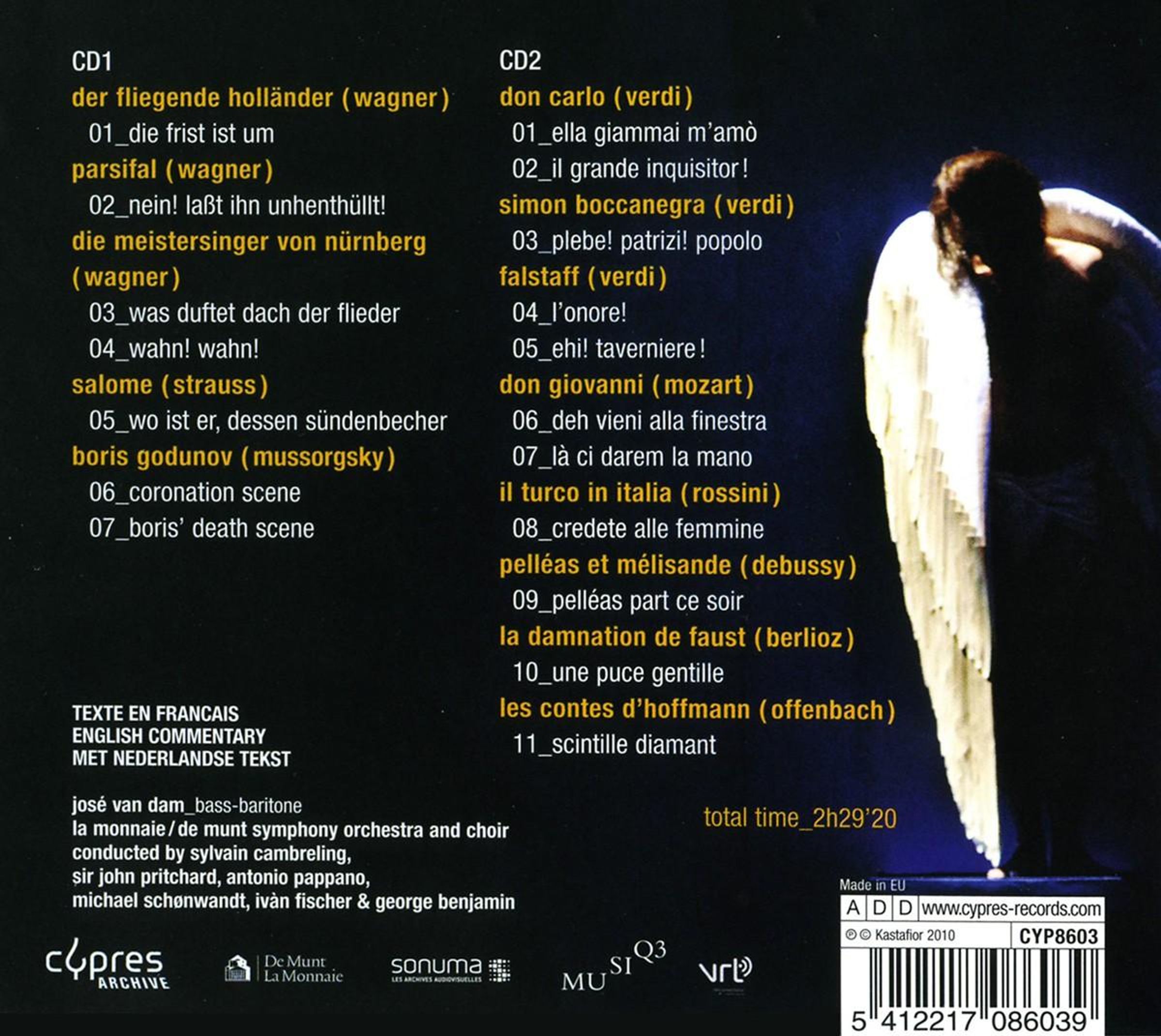- Jose van Dam, Choeurs de la Monnaie / De Munt Choir, Orchestre Symphonique de la Monnaie / De Munt Orchestra, Sylvain Cambreling, John Pritchard, Antonio Pappano, Michael Schönwandt, Ivan Fischer, George Benjamin