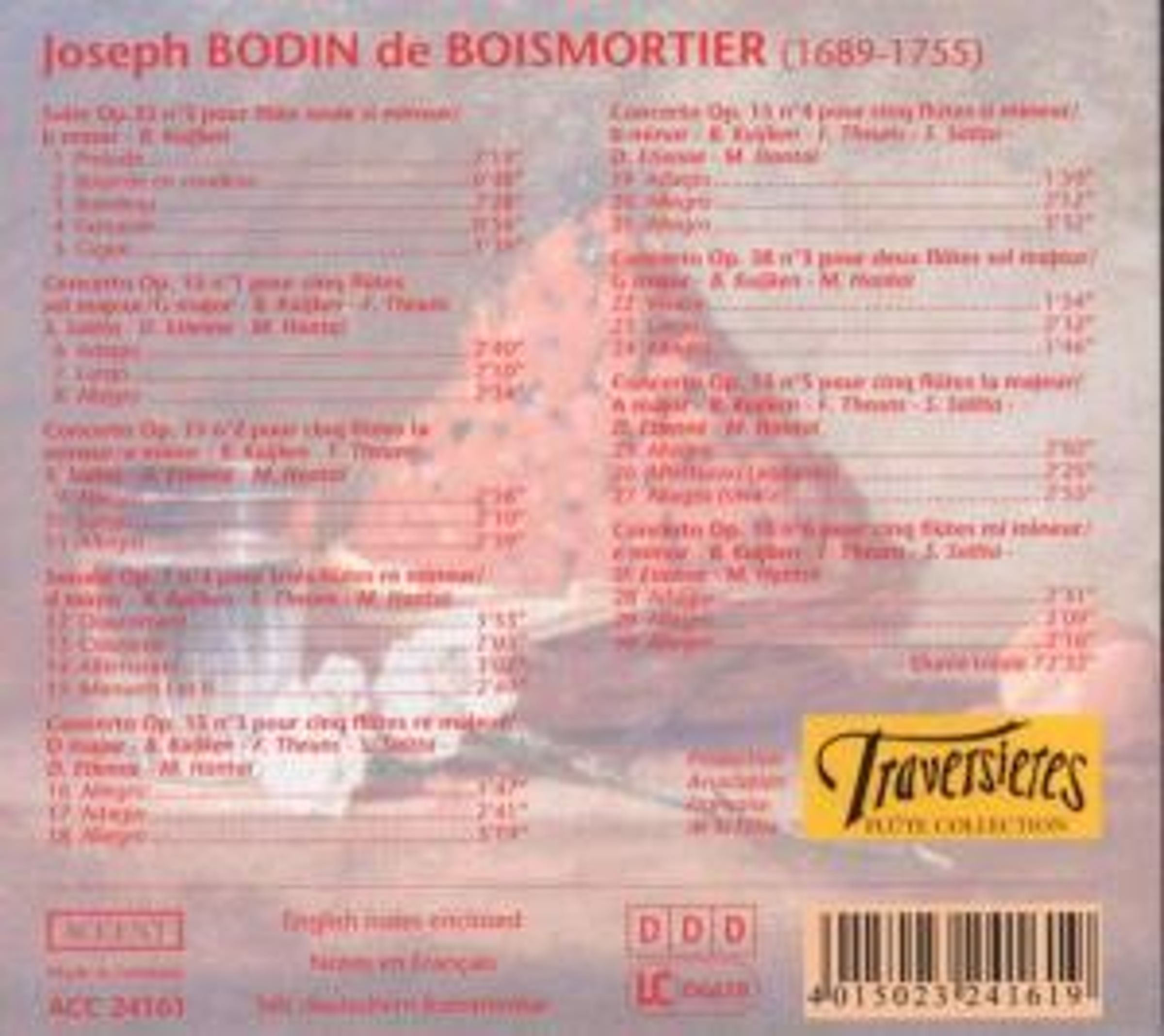 Joseph Bodin de Boismortier: Konzerte für 5 Flöten op.15 Nr.1-6 auf CD