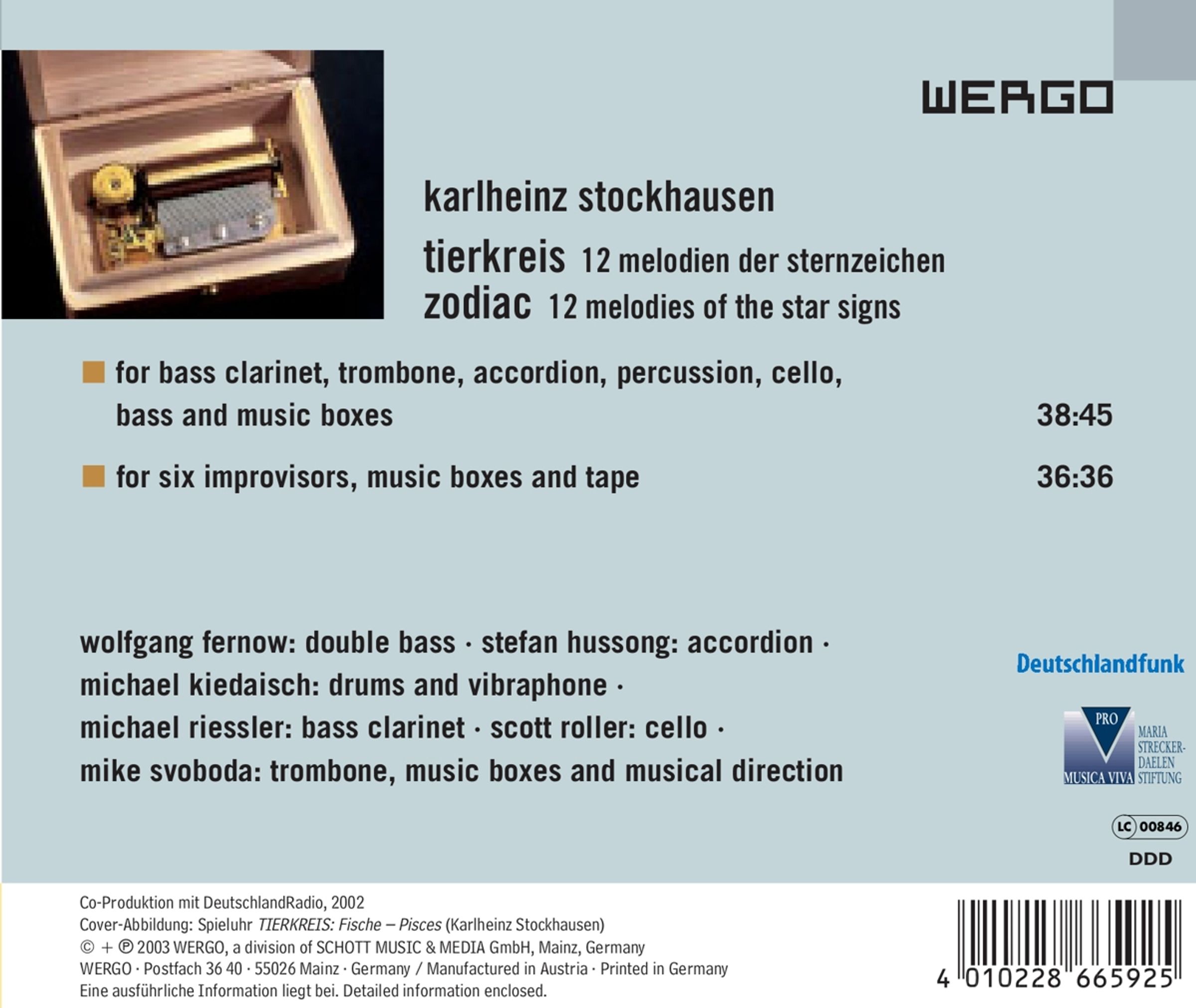 Tierkreis: 12 Melodien der Sternzeichen (für 6 Improvisateure, Music boxes und Zuspielband)