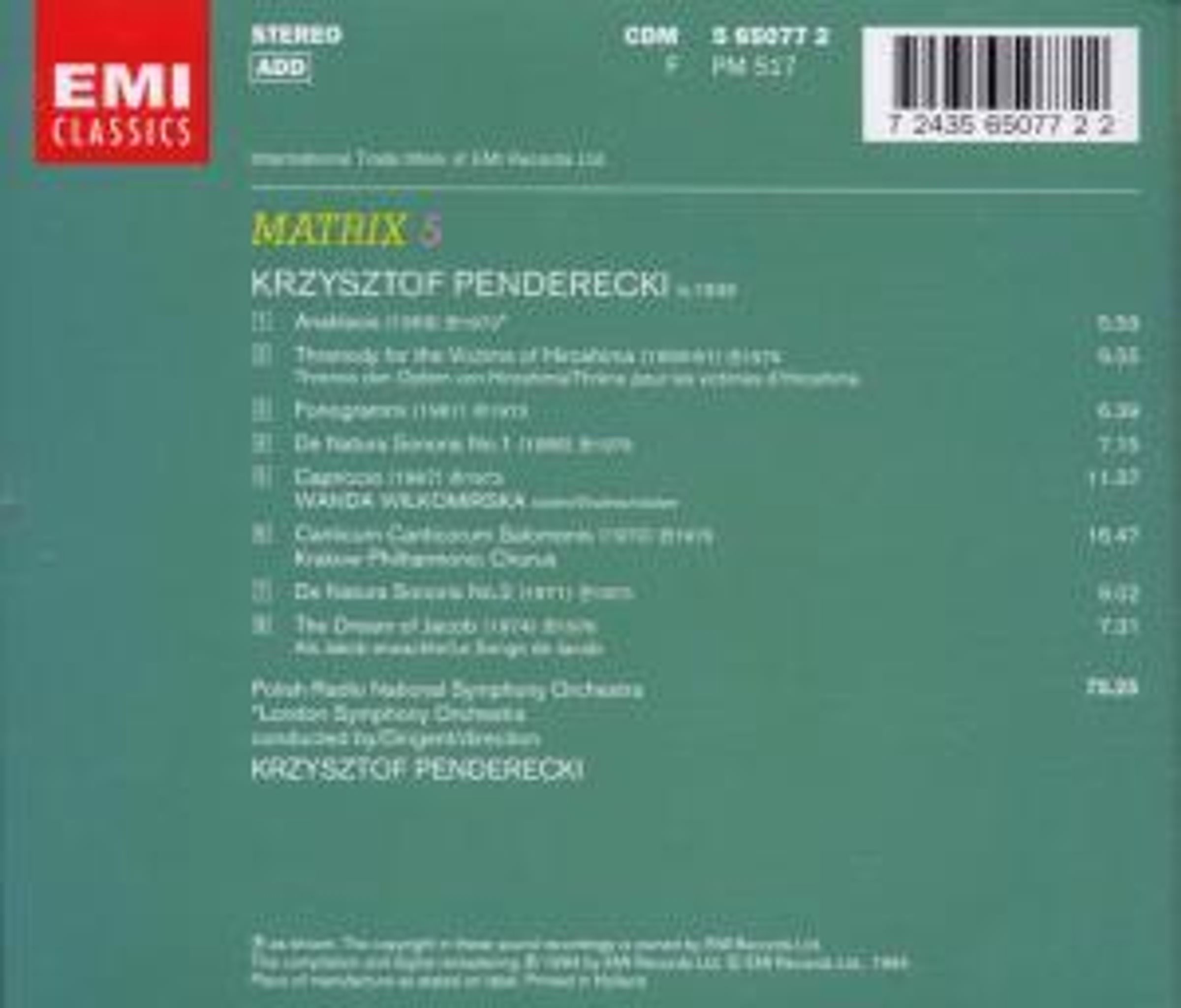 - Wanda Wilkomirska, Krakow Philharmonic Chorus, Polish Radio Symphony Orchestra, London Symphony Orchestra, Krzysztof Penderecki