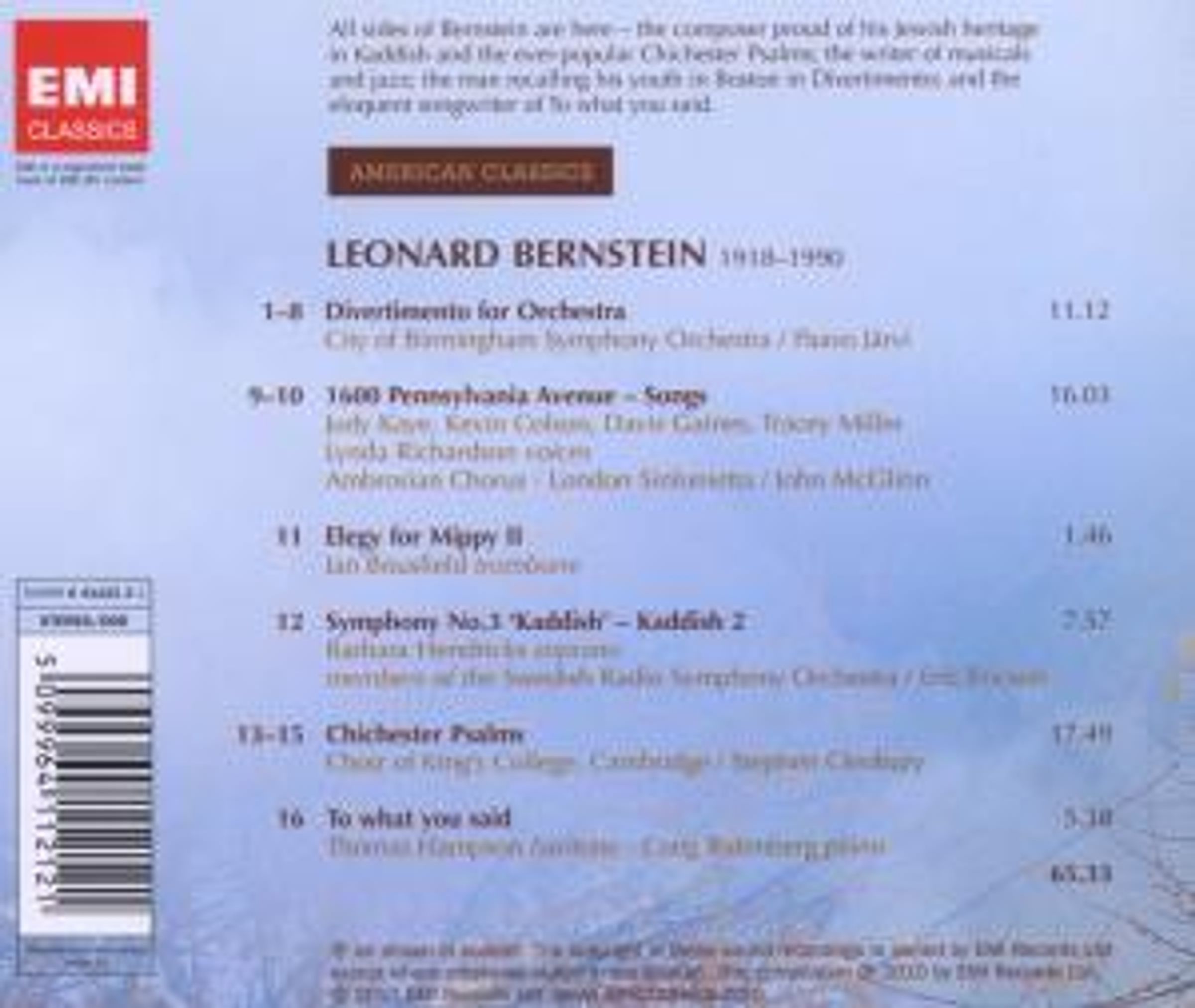+Divertimento für Orchester; 1600 Pennsylvania Avenue-Songs; Elegy for Mippy II; Symphonie Nr. 3 "Kaddish";To what you said