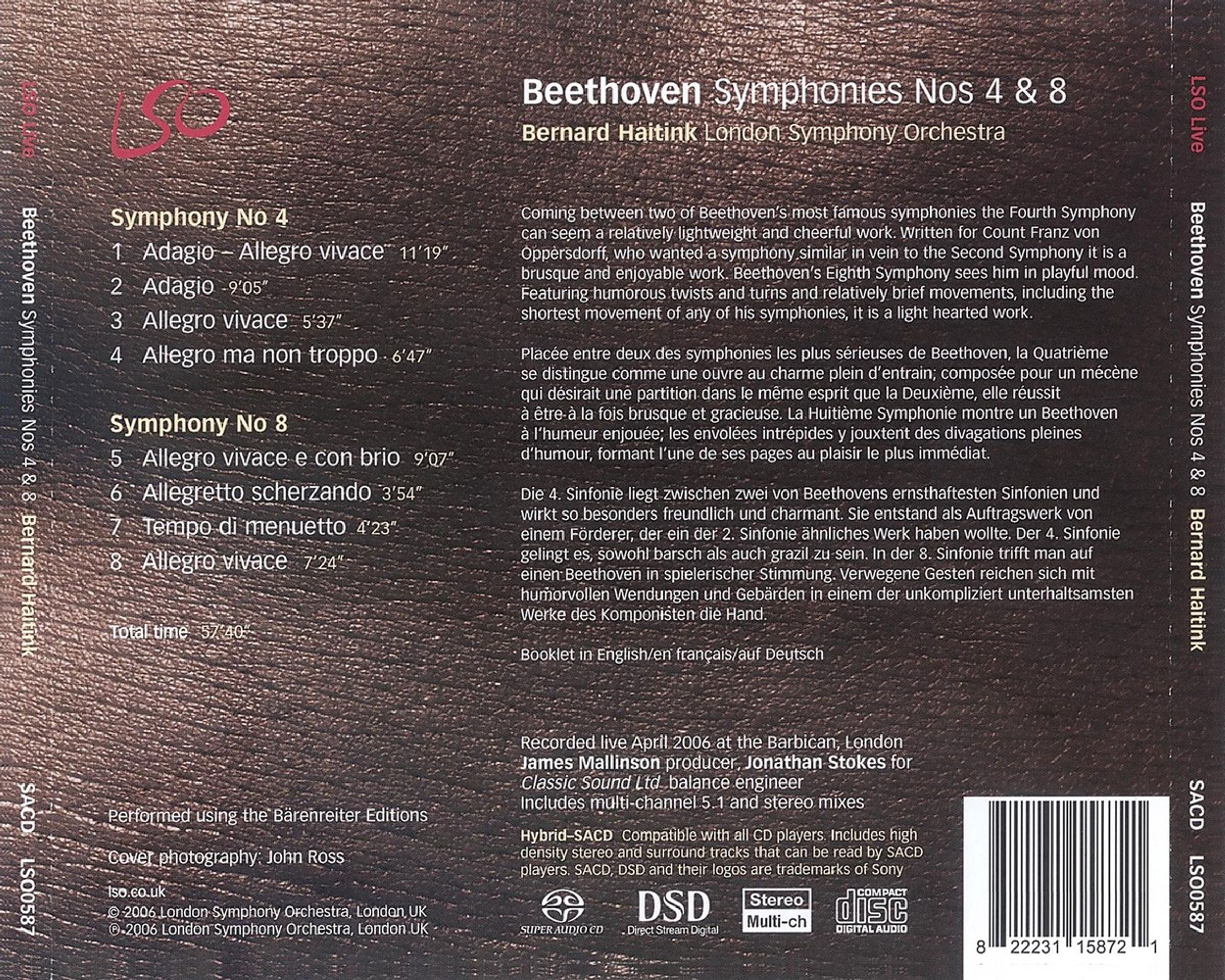 Ludwig van Beethoven: Symphonien Nr.4 & 8 auf Super Audio CD