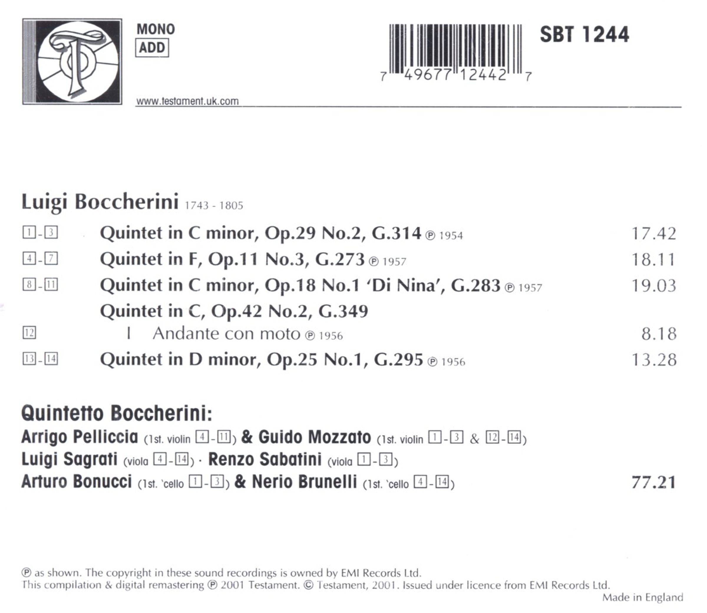 Ohne Zweifel gehört Boccherini zu den am meisten unterschätzten Komponisten der gesamten Musikgeschichte. Man fragt sich, für wie reich an guter Musik wir uns einschätzen, dass wir es uns leisten, das Oeuvre eines so bedeutenden Komponisten einfach zu ignorieren. Es gehörte in den 50er Jahren eine Menge Mut dazu, sich in diesem Umfang mit Bocherini zu befassen, doch das Engagement geschah aus uneingeschränkter Bewunderung, was man in jedem Takt dieser Einspielung hören kann. Nicht nur für Kammermusikfreunde eine lohnende Wiederveröffentlichung.