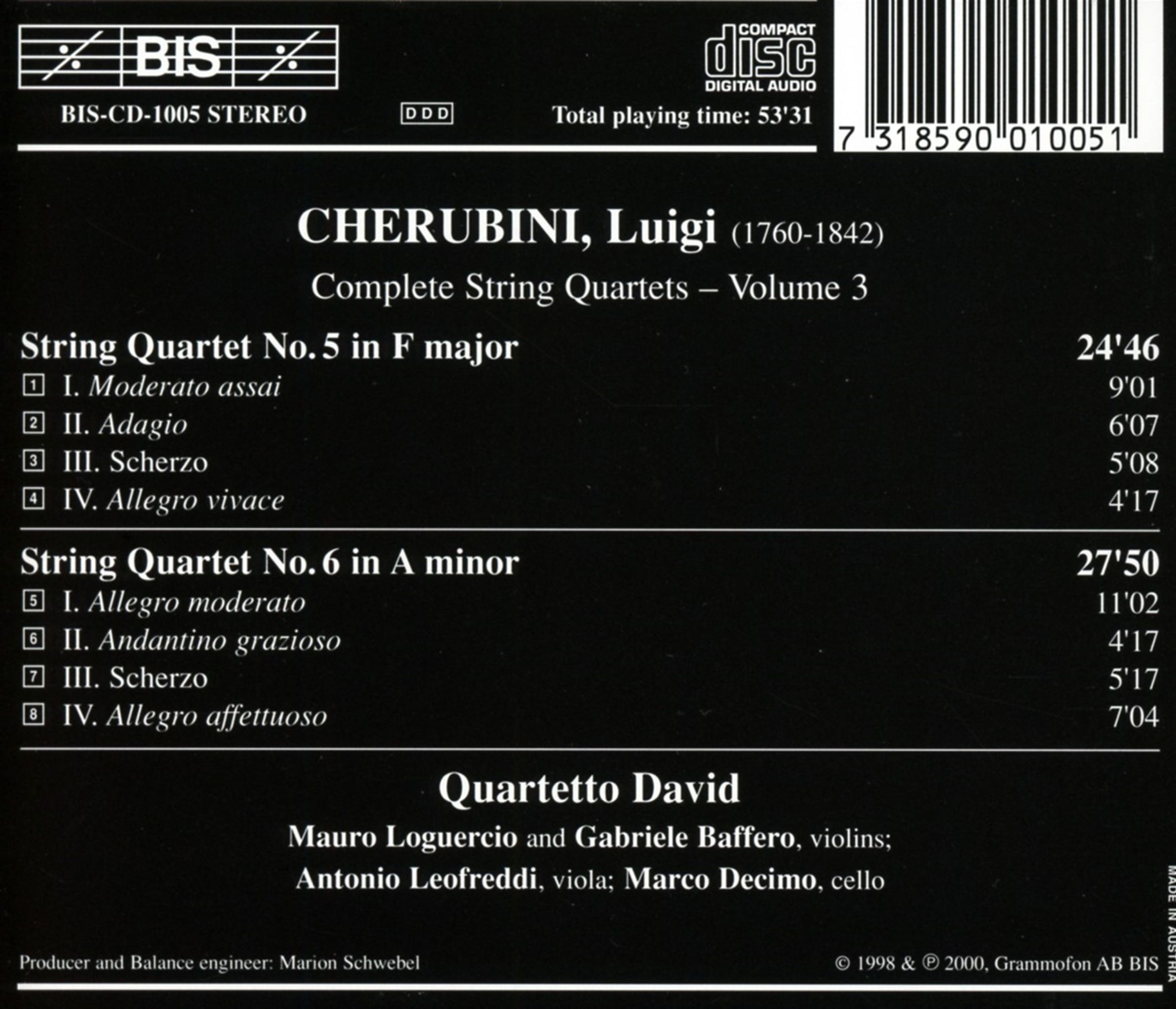 Luigi Cherubini: Streichquartette Nr.5 & 6 auf CD