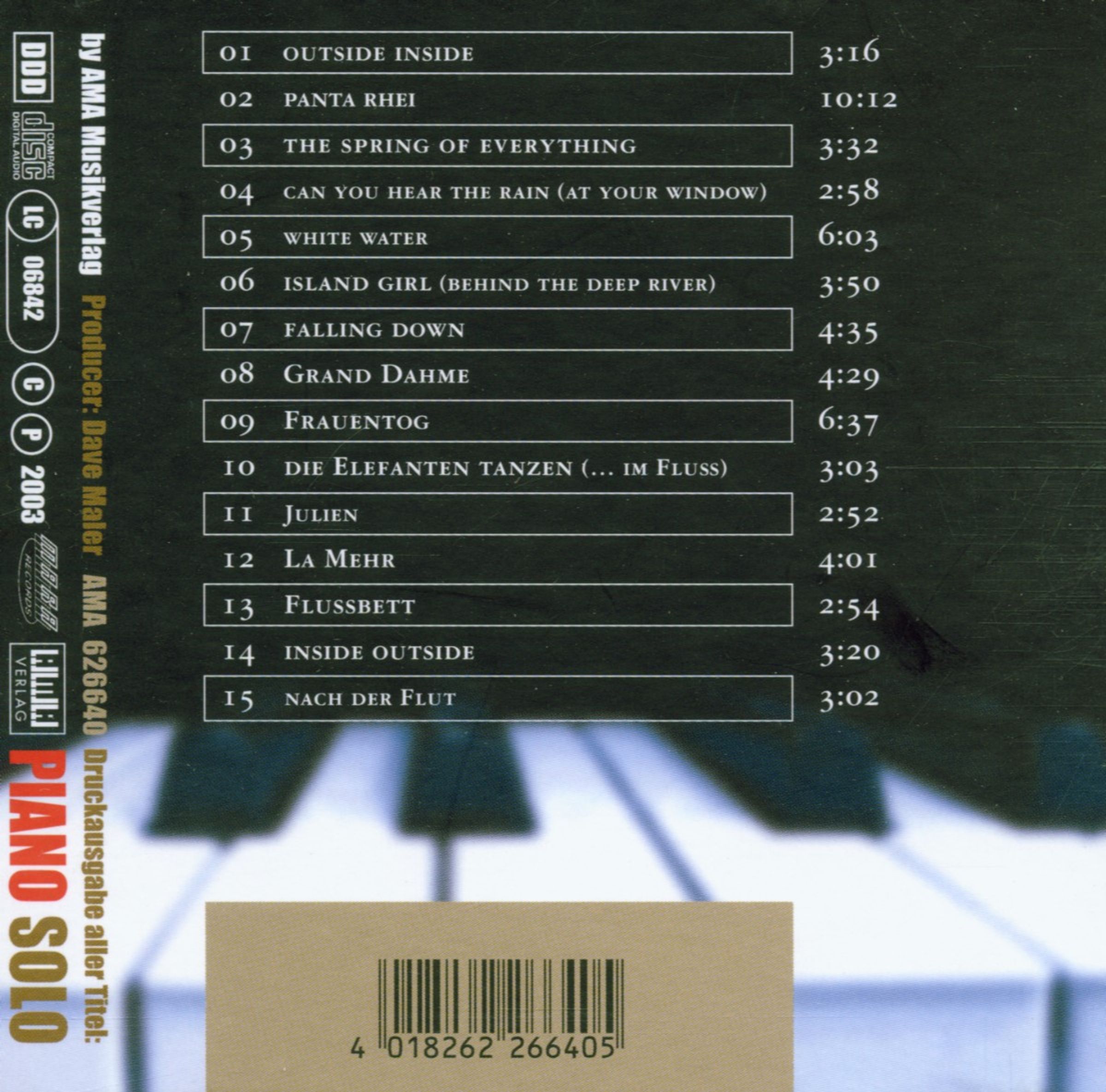 Outside Inside; Panta Rhei; The Spring of Everything; Can you hear the Rain; White Water; Island Girl; Falling Down; Grand Dahme; Frauentog; Die Elefanten tanzen; Julien; La Mehr; Flussbett; Inside Outside; Nach der Flut