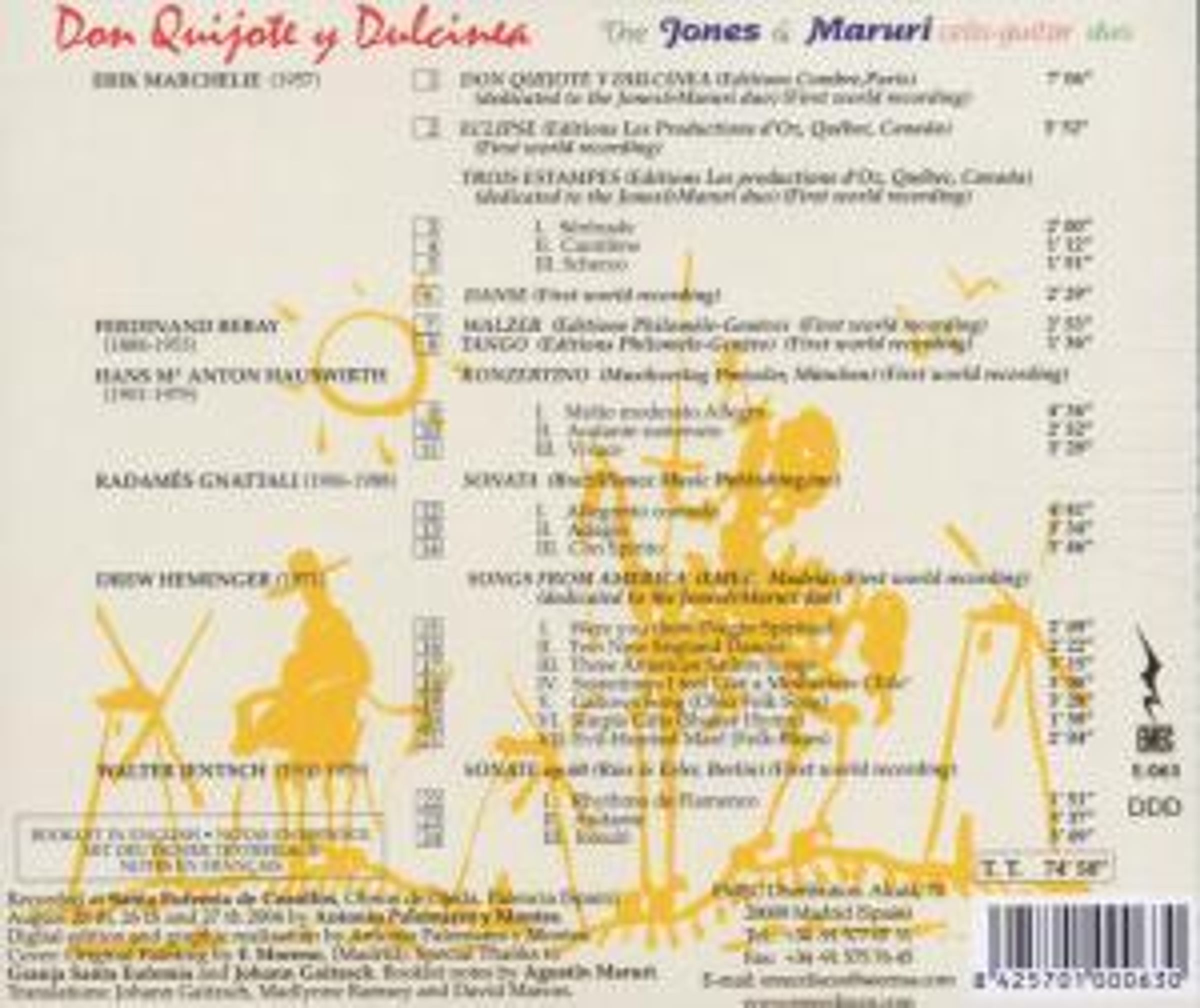 Weltersteinspielung mit zeitgenössichen Kompositionen für Cello und Gitarre, die sich dem Mythos Don Quixote & Dulcinea verschrieben haben.
