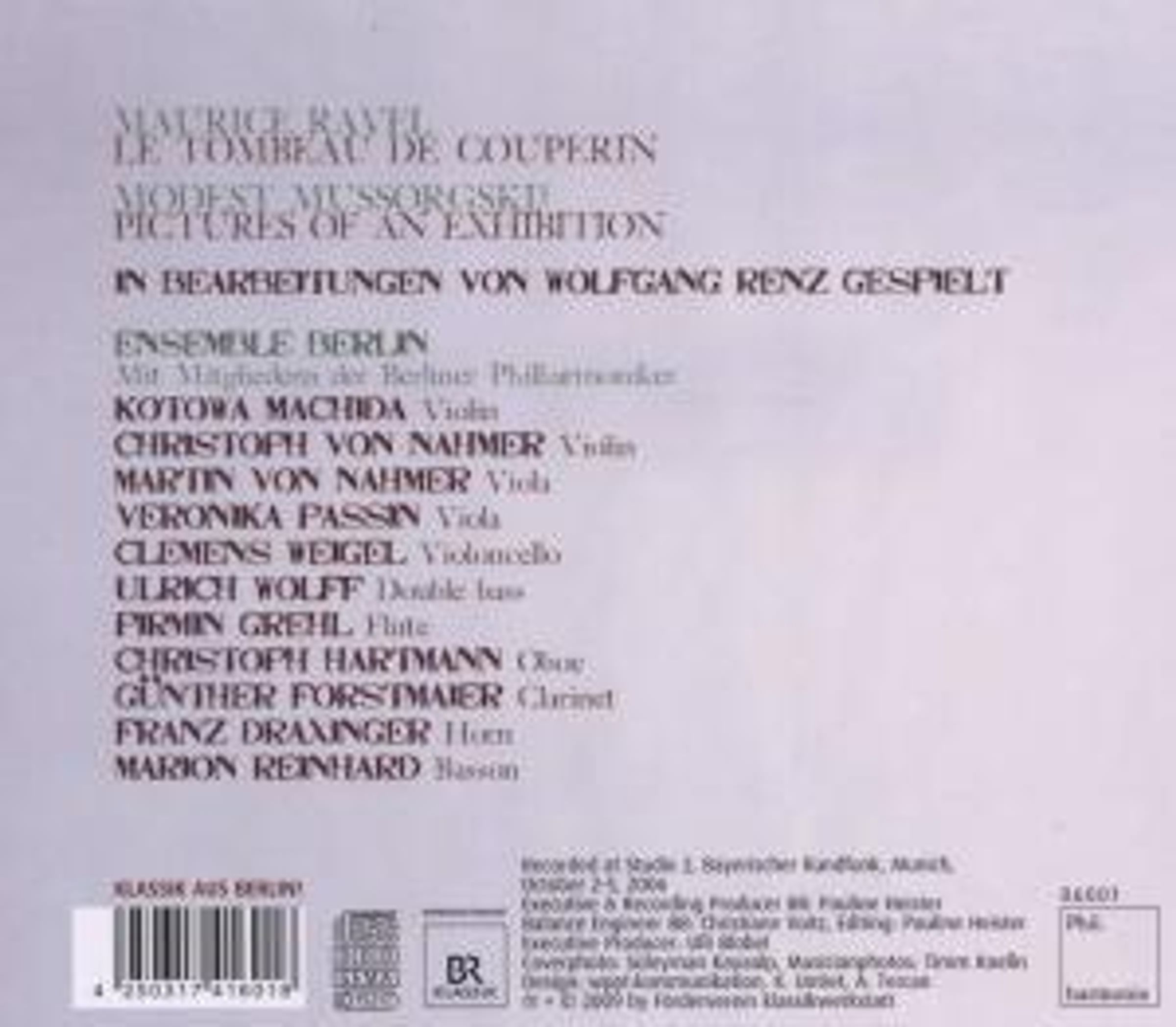 kulturradio.de 11/09: "Mit seinem Toumbeau de Couperin erleben wir Maurice Ravel in höchster Spielkultur - in der Kammermusikformation des Ensemble Berlin sorgt jeder Einzelne wie eine Perle in einem Collier für den Gesamtglanz der Musik. Zu Ravels musikalischem Grabstein für Couperin gesellen sich Ohrwürmer: die Bilder einer Ausstellung von Modest Mussorgskij."Disk 1 von 1 (CD)