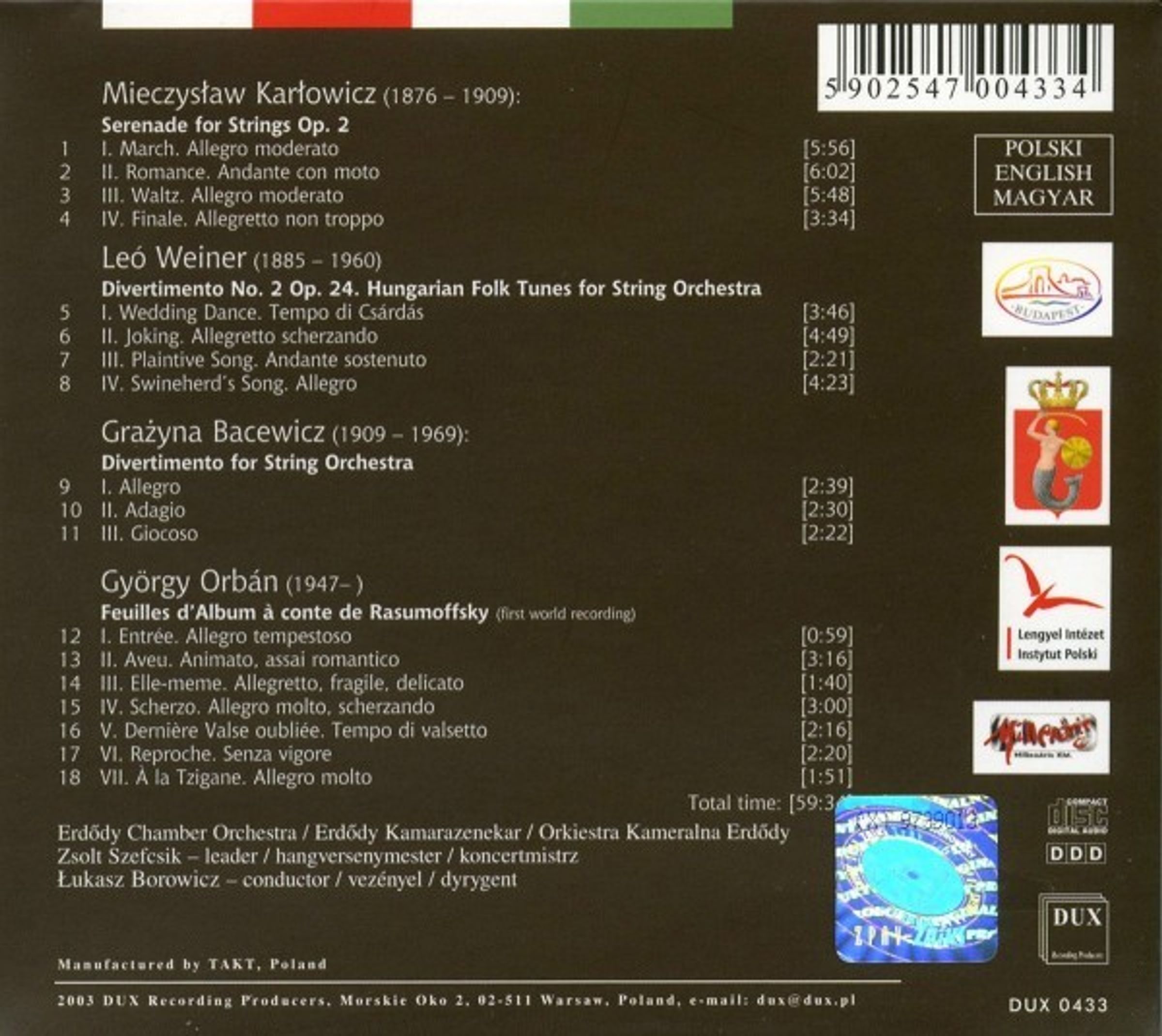 Mieczyslaw Karlowicz: Streicherserenade op.2 auf CD
