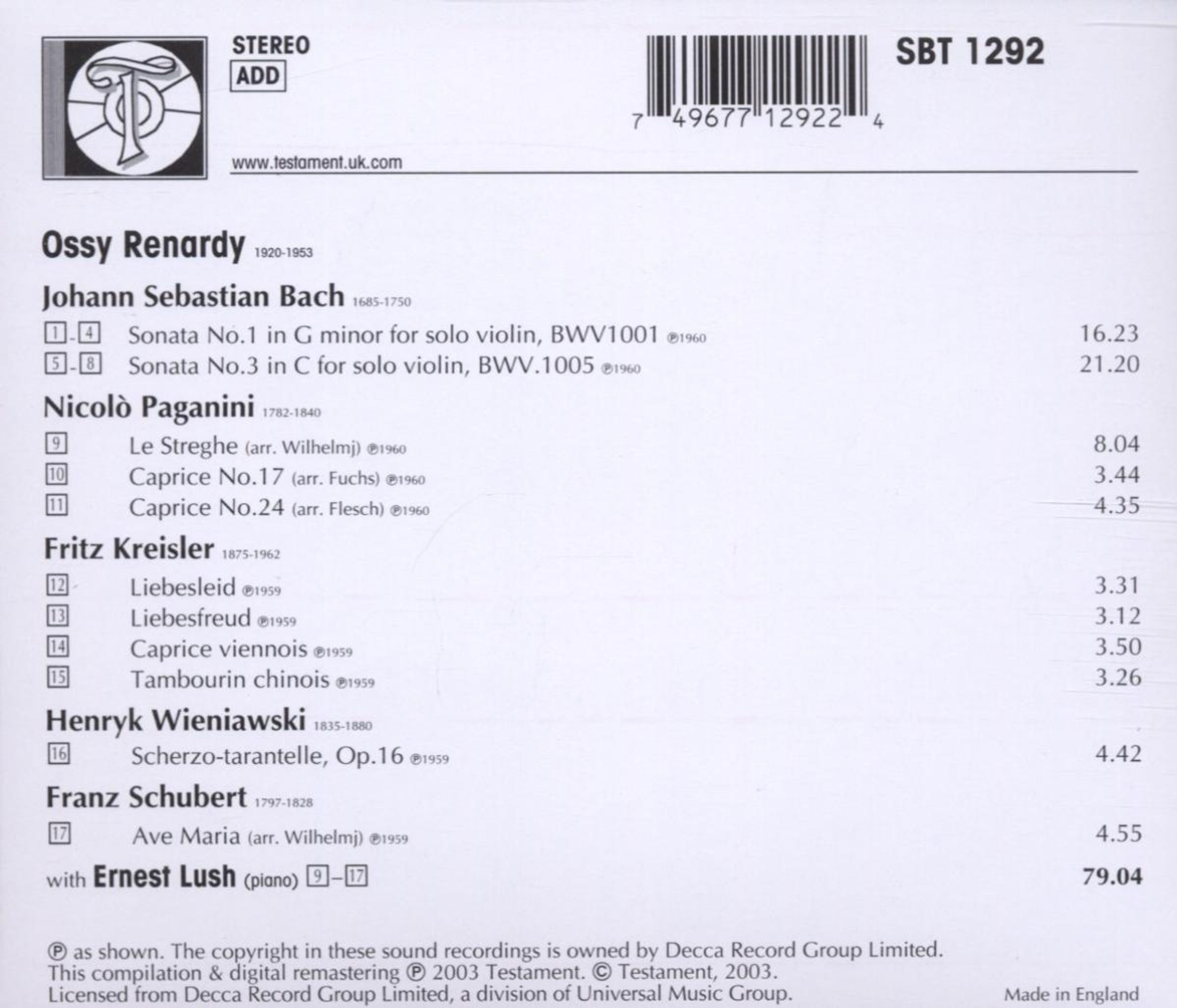 - Ossy Renardy (Violine),Ernest Lush (Klavier)
