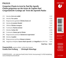 rbb Kulturradio: "Nur wenn man diese Vortragsweise zugrunde legt, kann man diese Musik historisch adäquat und für den Hörer faszinierend wiederbeleben, was die CD "Gregorianische Gesänge auf Texte des Apostel Paulus" eindrücklich beweist. Gerade diese rhythmische Freiheit ist das unmittelbare, singuläre Faszinosum der Gregorianik heutzutage." Toccata: "So ist eine faszinierende und fesselnde Aufnahme entstanden. Alles zusammen eine Modellproduktion."Disk 1 von 1 (CD)